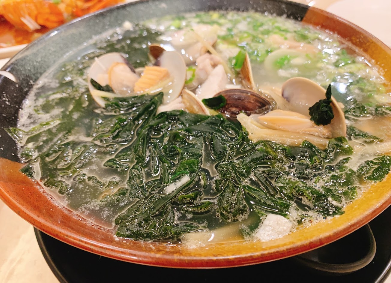 鮮蝦海鮮粥一定要點,原本以為是一人份800不太敢點,點菜時老闆推薦說很好,是十人份,真的很實惠,而且很鮮,鹹蛋透抽也很厚,海鮮都很鮮,炒食蔬也不錯。