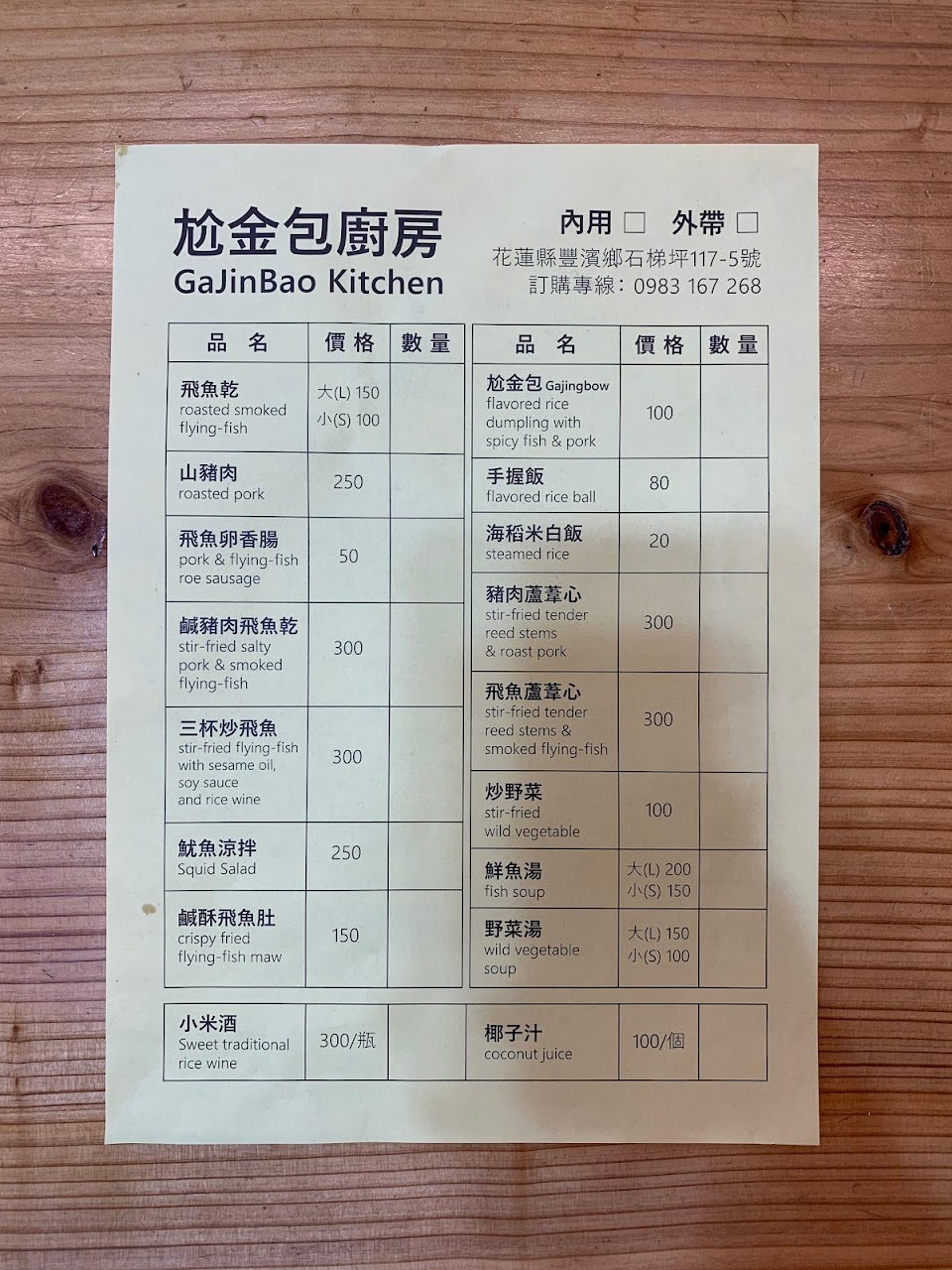 進入用餐並沒有人可以招呼,自己去拿單填寫完給櫃檯,櫃檯小姐態度也不算好,主要以飛魚為主、其他菜色以花東地區來說算是普普,用餐環境睬自然/無空調,廁所也只有男女各一間,收費中等,假日客人算多,附件沒有甚麼可以選擇。
