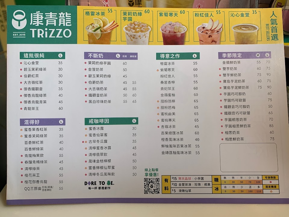 之前在樹林火車站喝過康青龍的檸檬綠,超級好喝,茶香濃郁又很酸,超愛。。今天經過長春店買了水果茶才55元,水果料好多,而且一喝更驚豔,濃郁的茶香,應該是伯爵茶底吧,超級好喝,在附近上班,喝過許多家,目前覺得這家茶味最香濃,超讚~