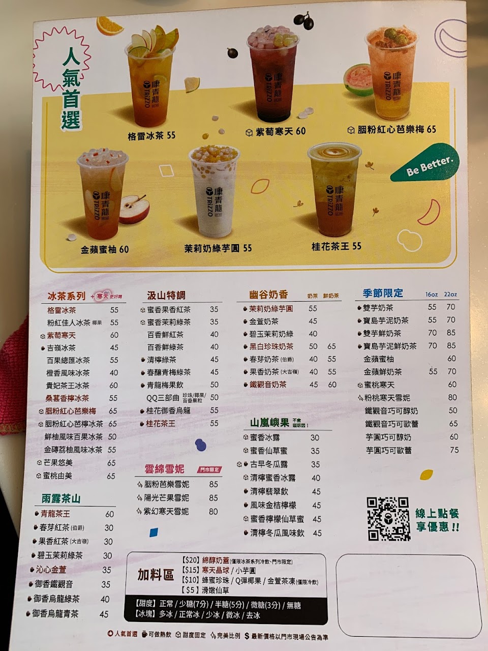 康青龍的茶飲真的推推!!我最愛的桂花茶王竟然沒有了…難過,不知道為什麼這間店員有時候很少,一堆客人和外送人員在這邊等,然後只有一個店員忙著做飲料~假日耶,店員也辛苦…