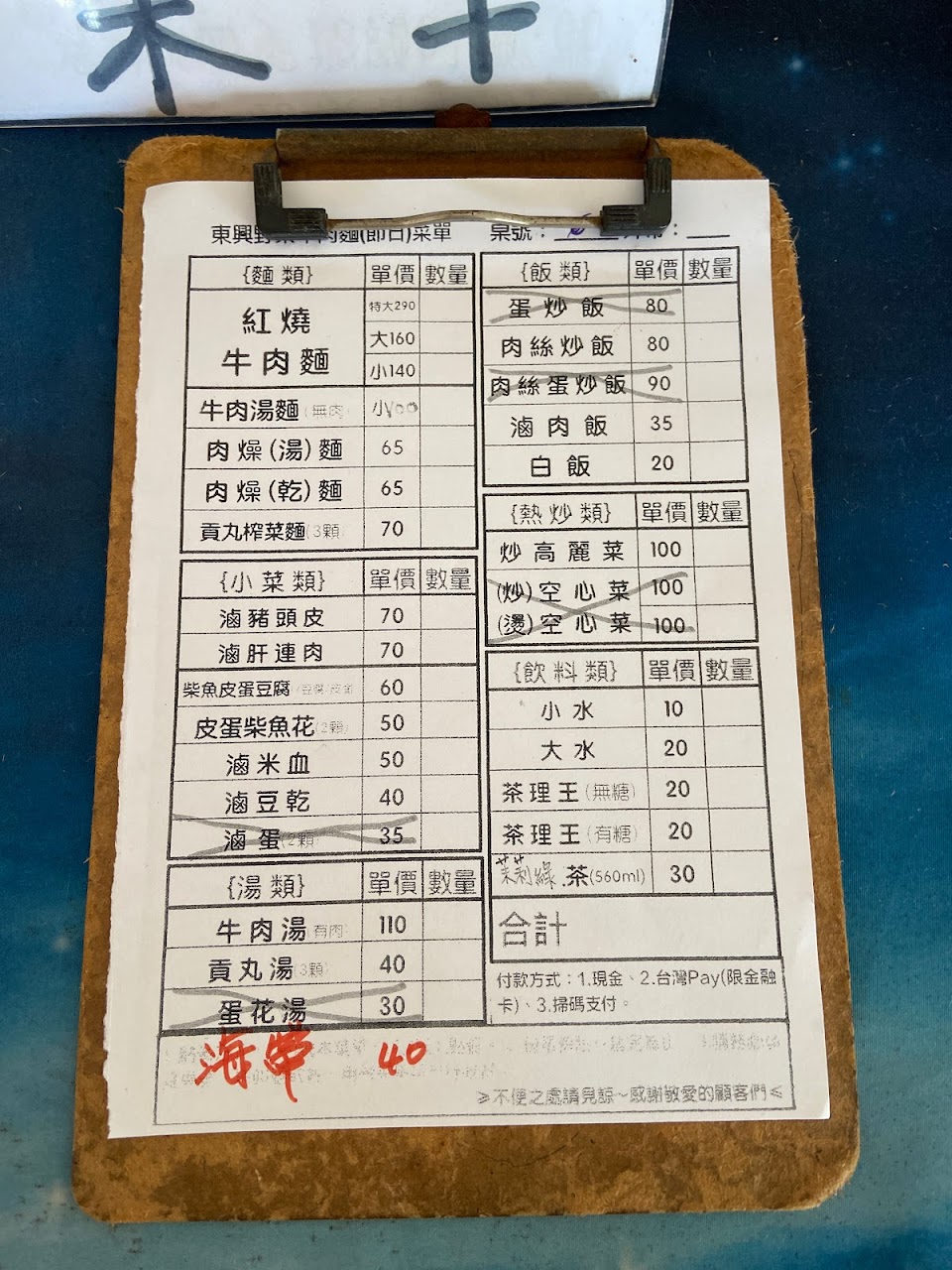 東興牛肉麵平時只有中午營業,因為台 11線新社東興段有營業的餐館很少,所以中午吃飯時間有經過豐濱鄉東興路段,可以來這吃個午餐。