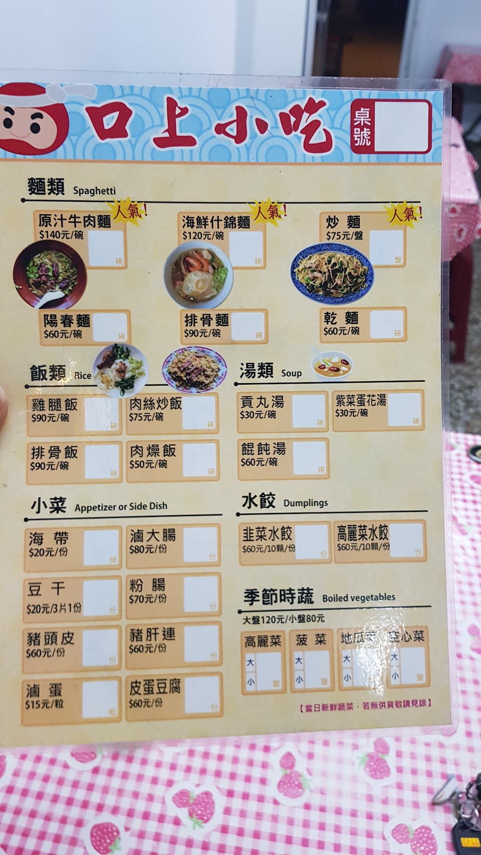 炒青菜很好吃 炒飯炒麵達水準 水餃不推 整體體驗優良 服務 內用 餐點類型 晚餐 平均每人消費金額 $1-200 餐點:5 服務:4 氣氛:3 建議的餐點 炒麵