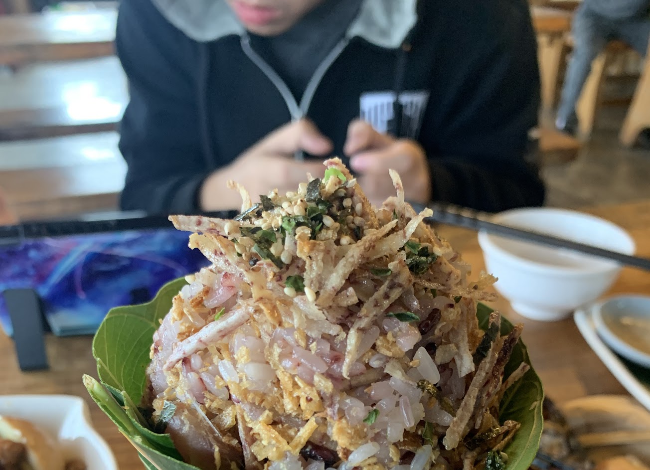餐點好吃!但衛生水平可能要加強,包飯的葉子上有蜘蛛網。