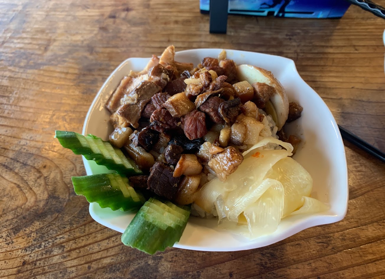 滷肉飯肉很硬不好吃沒特色,炒泡麵普通,而且太濕(裡面蝦子新鮮)、青菜不用點,