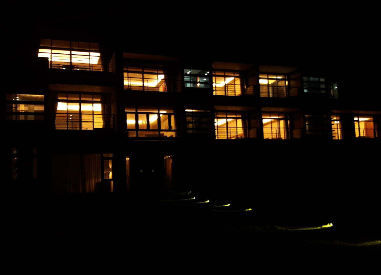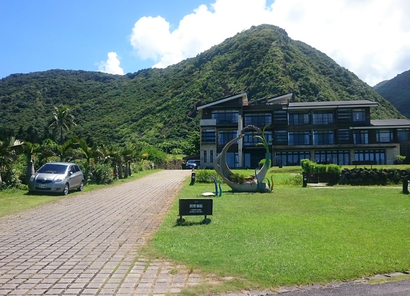 地點風景美, 房間大窗戶面東, 早上可以在房間內躺著看海上的日出. 停車處到大廳有凹凸草坪跟石階, 行李要用提的, 若拖行則較困難.