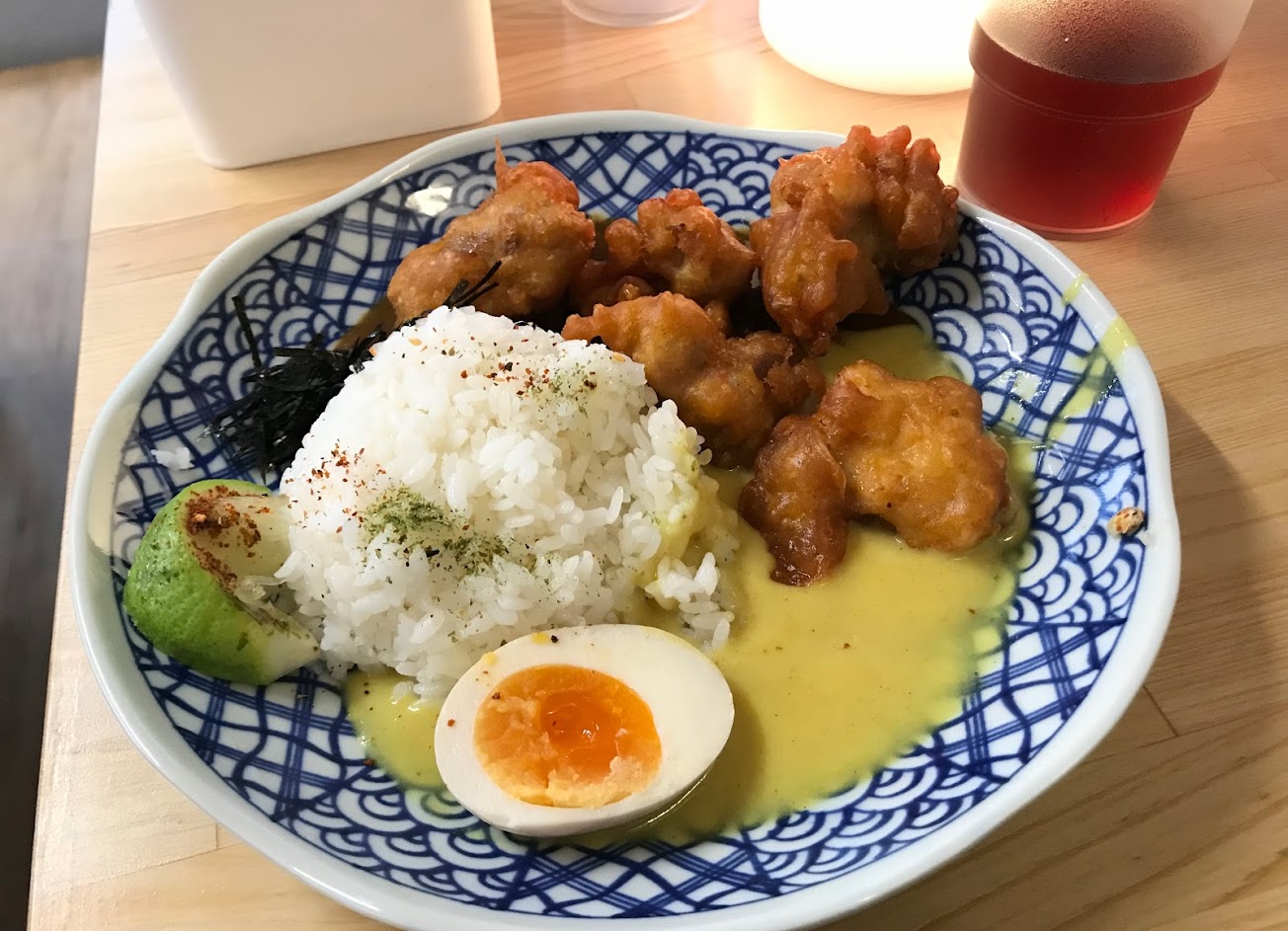 第一次到訪此店,日式風格,光亮的轉角處,喧鬧中有個寧靜的飲食空間,點了招牌咖哩唐揚雞,口味濃香但也不會太重口味,鹹度適中,雞肉炸過香嫩,吃下來cp值算挺高的,有到訪附近朋友不妨可來試試。