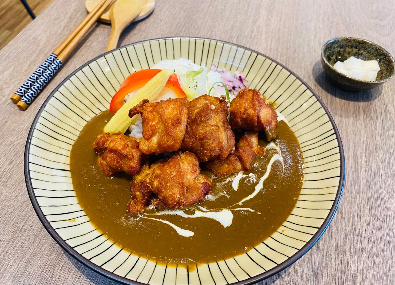 咖喱濃郁,唐揚雞,服務也很棒,店員都很友善,上菜速度快,環境也很乾淨舒適。推!