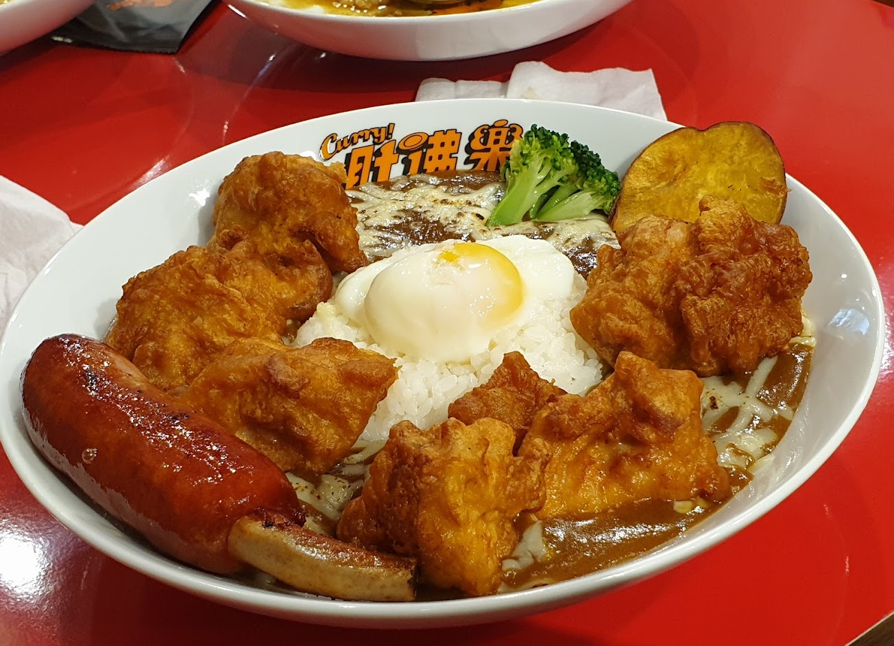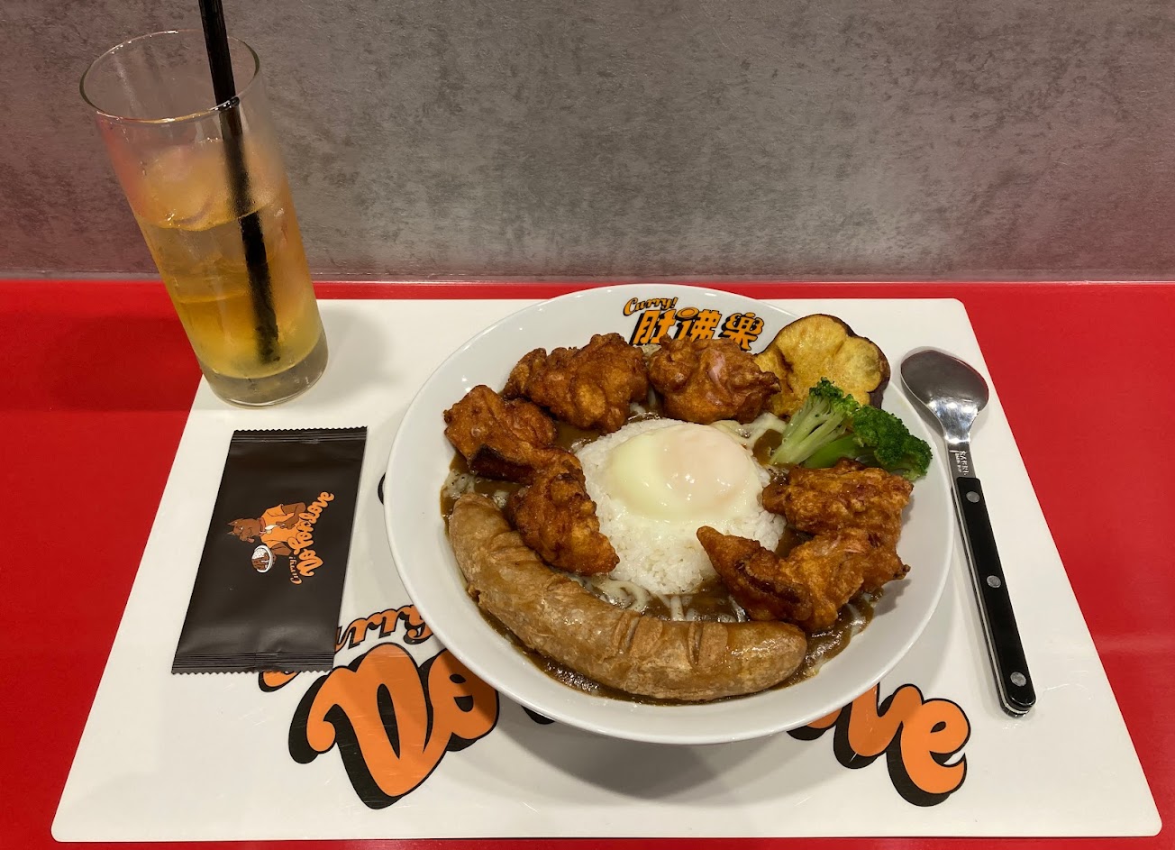 這是是點咖喱炸雞,炸雞的份量非常多,每塊都炸的酥脆多汁一點都不柴,咖喱醬屬於正統的咖喱醬比較符合大眾的口味,喜歡吃辣的人一定要加辣油,非常的香,會讓咖喱吃起來更有層次,另外份量也非常的多!女生要吃完很困難,另外也可以升級套餐,套餐會有一杯飲料、起士、有帶骨香腸和白香腸做選擇,而香腸部分我個人比較偏愛帶骨香腸,香氣較足有嚼勁!是會讓人想念的咖哩,下次會再來吃?