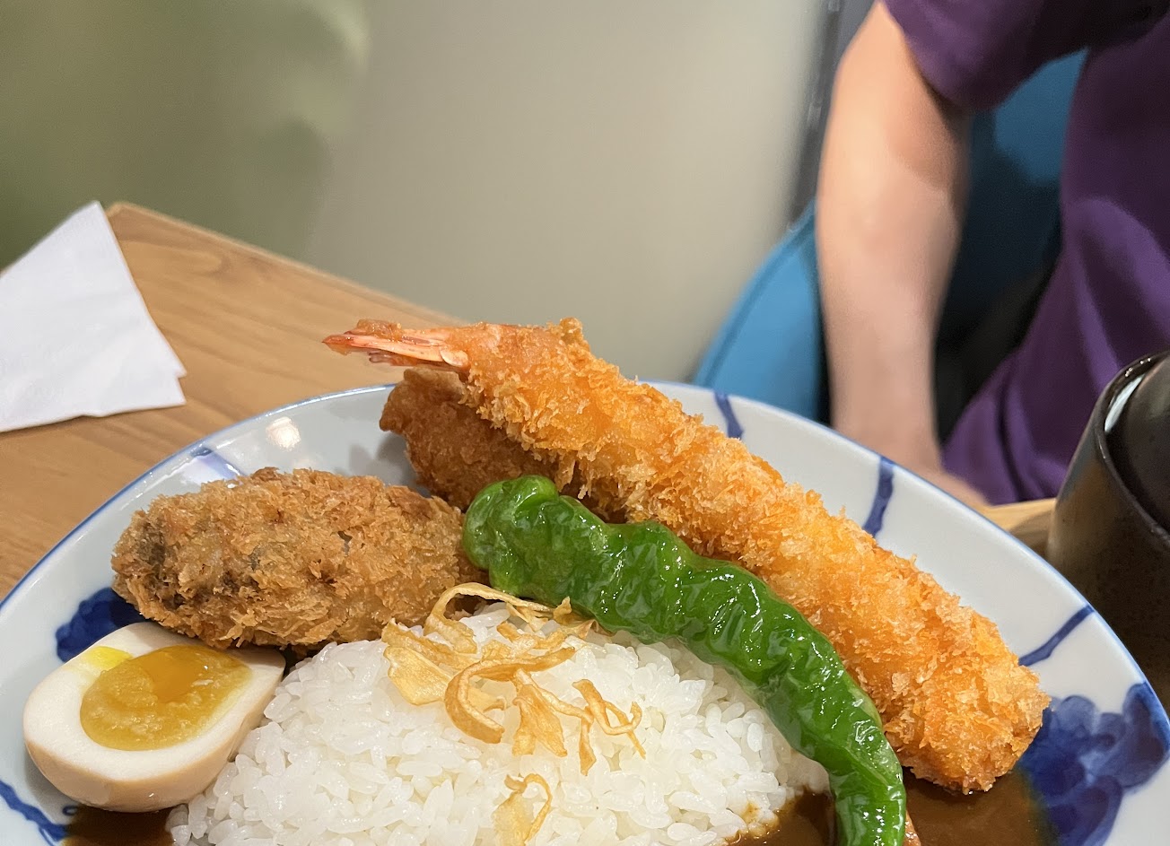 海鮮咖喱很棒哦!牡蠣炸蝦現炸很新鮮