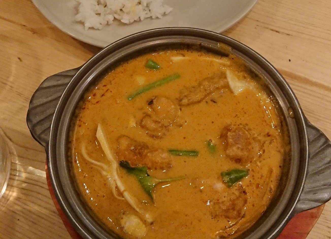 複合式咖啡廳的裝潢,南洋風湯咖哩是特色餐點,也有一些日式定食料理可選,環境舒適,但今日點的炸雞咖喱份量不多,一小鍋咖哩+白飯要價$230,不便宜,口味算好吃,但cp值不高,若再來會想嘗試其他餐點。