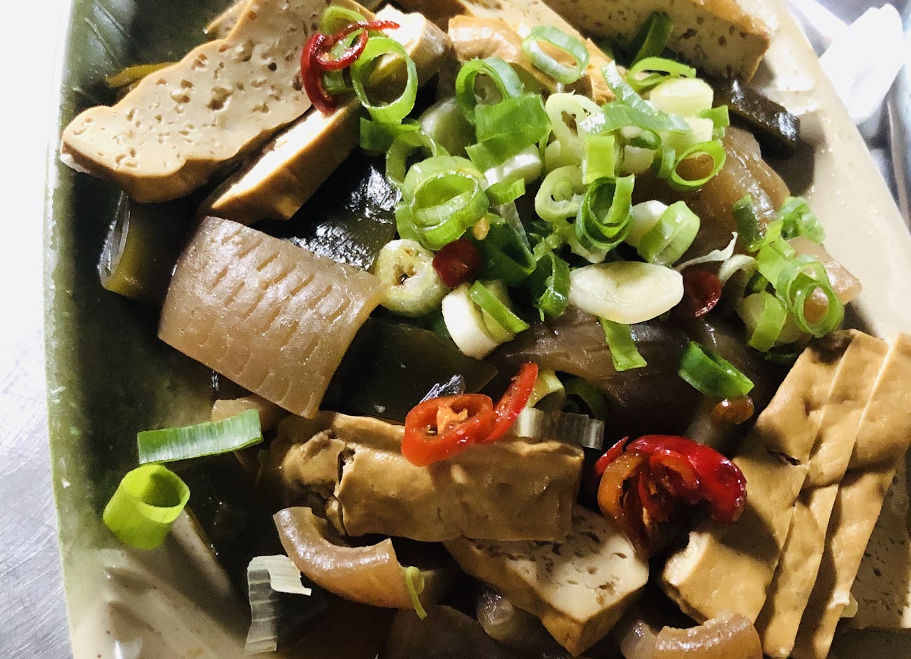 ?滷味拼盤 想吃甚麼先夾,夾完後給老闆就可以。我們點的是花干、蘿蔔、豆干、海帶、滷蛋,其中最喜歡的是花干,吸滿飽飽的湯汁,很入味。