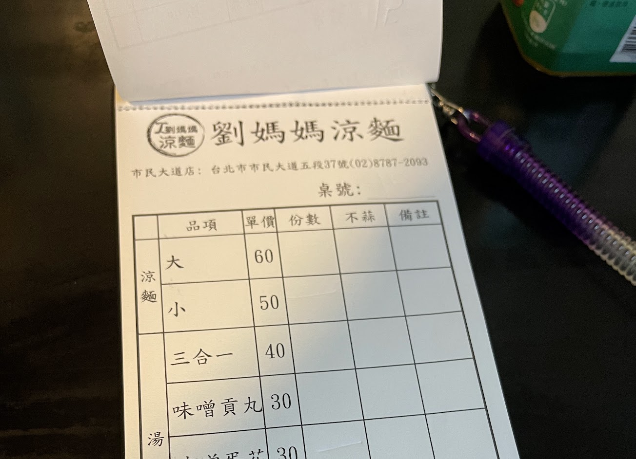 劉媽媽賣的東西相當簡單: 涼麵、味增湯(可加貢丸、蛋花)、荷包蛋/蔥蛋?。