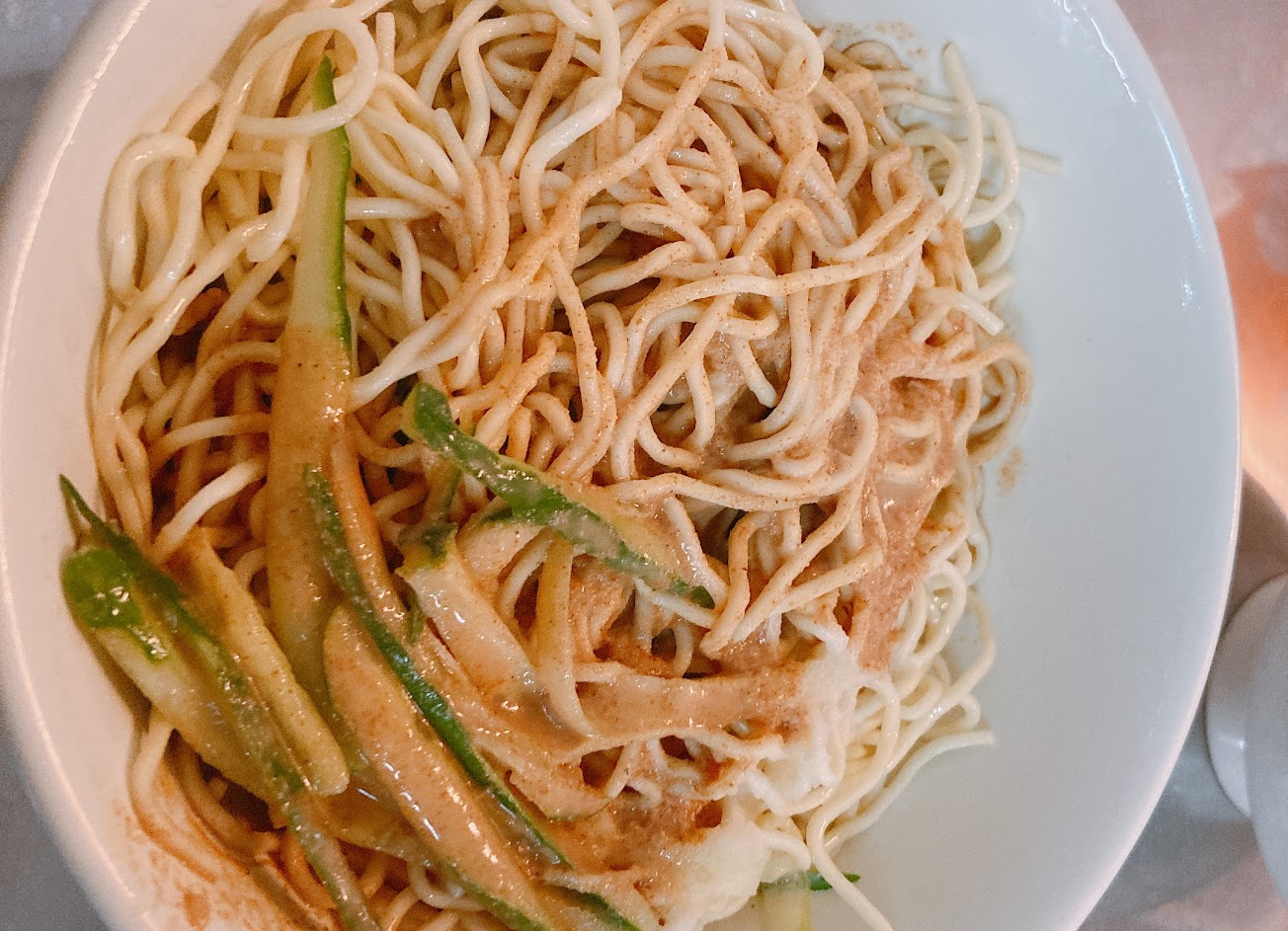 涼麵軟Q適中,醬料溫和香醇