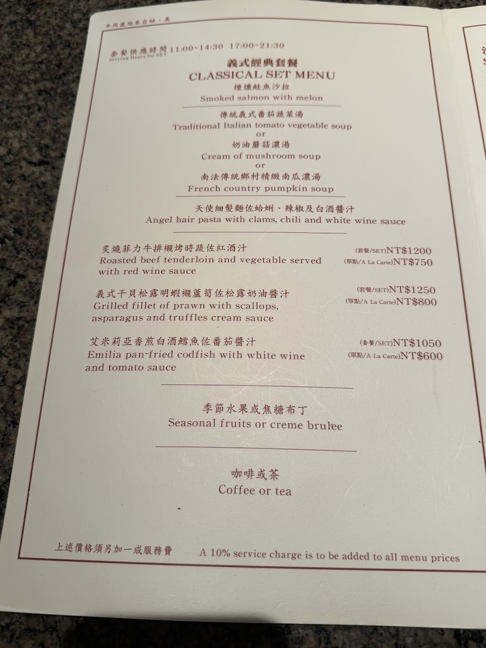 2024最新在地推薦餐廳的菜單_蝶花廳(義式料理.台菜宵夜) – 兄弟大飯店的菜單、圖片