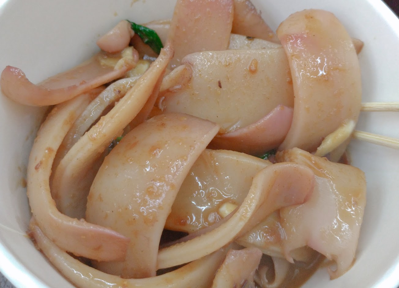 蠻好吃,味道調的很好!沙茶味清淡不會太重太膩,伴著九層塔香氣,鹹香順口!魷魚新鮮Q彈也不會過脆