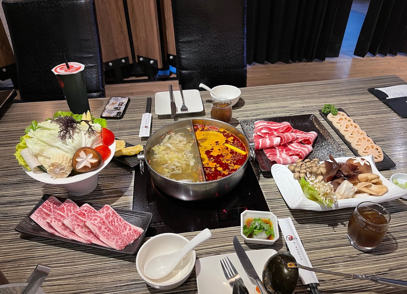 其中一位服務人員很親切另外一位很冷, 價格真的貴,中餐時段一人低消600元,原本點了1400元還被店員說應該吃不飽,可是我們在飯店吃飽早餐不餓,如圖片這些東西(沒拍到老油條跟白飯)兩個人花了近1800元,但東西真的不多,手工蛋餃均價一個40元,牛小排一片100元(如照片所示),且牛小排的部分冷面店員送上來就走也沒說會幫忙涮或是提醒等等會有人幫忙涮,我們自己涮了一片覺得不行很柴,比較親切的店員才過來說她會幫我們處理,湯底是好吃的,店員涮的牛肉也是好吃的,但我們浪費了一片,辣度不能調整(或是店員根本沒問我們),鍋底豆腐要跟店員說才會加,比起來我下次會選擇老四川或是海底撈都會吃得比較開心一點。沒有提供水,只能喝單點的飲料,不嗜辣的人真心不推。
