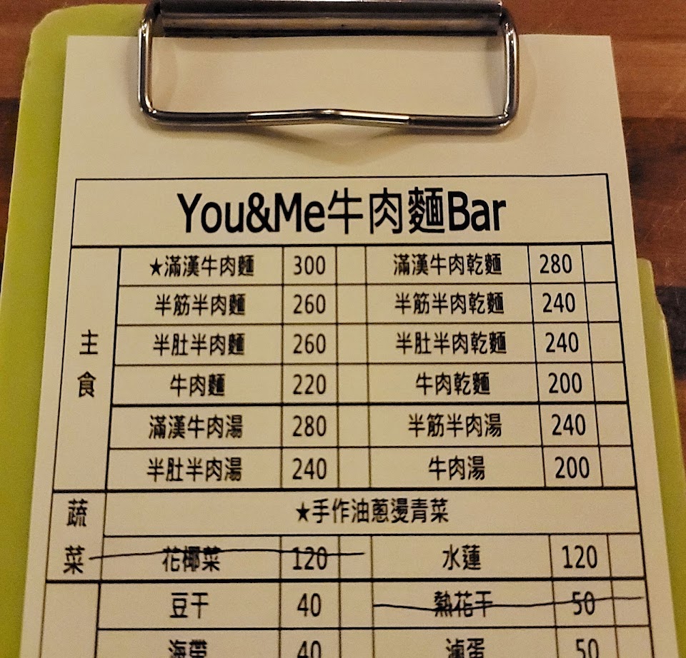 2024最新在地推薦餐廳的菜單_You&me牛肉麵Bar的菜單、圖片