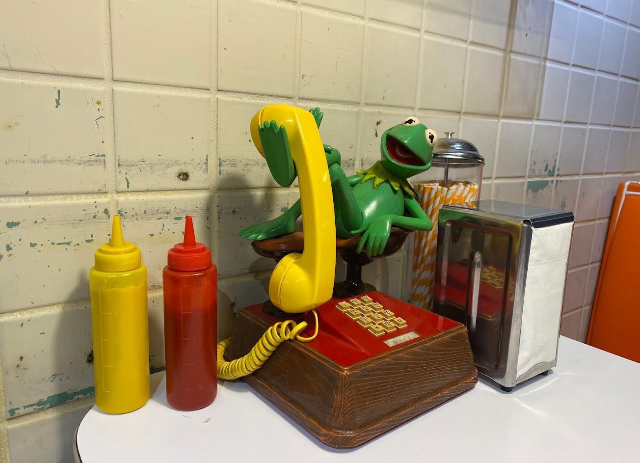 環境有許多復古美式擺設,但油煙味很重,而且隨處莫名的散落了一堆個人物品,廁所前有三雙鞋,也有外套夾客人椅子跟樓梯的夾縫間,也不摺好,就半掉出來那樣,不知道這裡其實是不是餐廳兼員工宿舍?