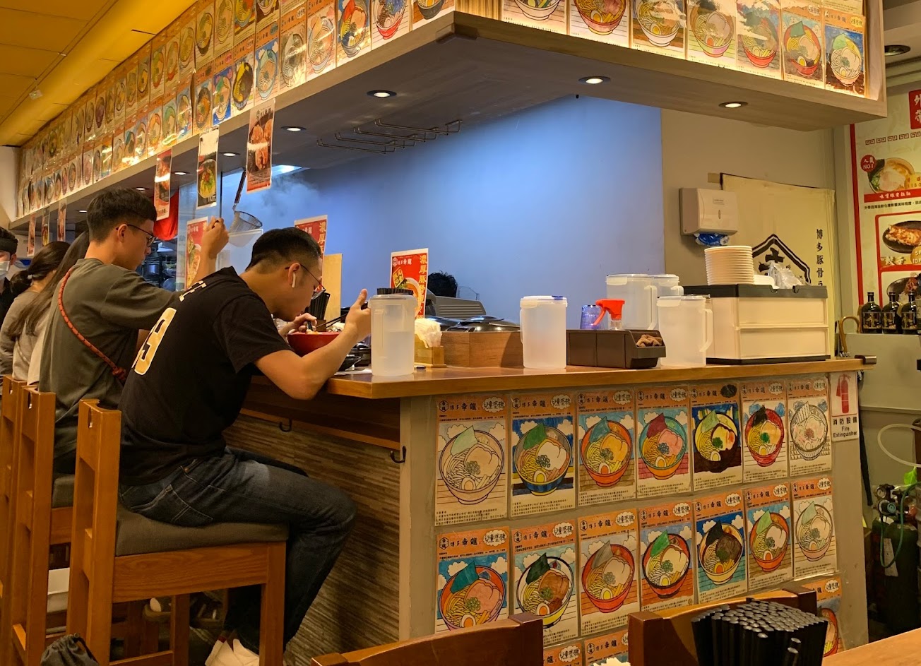 中午用餐時段開放到15:00(最後點餐為14:30)對於晚起的人是一大福音,店內座位約有25個,略為擁擠,店員大多都是日本人,拉麵湯頭屬博多豚骨較為重口味,與味增相比個人比較喜歡醬油,但麵體非常筋道,巴湯率很高,沒吃過的可以來吃吃看! 服務 內用 餐點類型 午餐 平均每人消費金額 $200-400 餐點:3 服務:4 氣氛:4