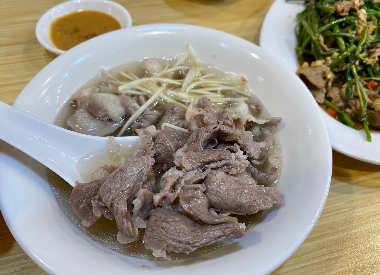 羊肉表現亮眼,清燉的湯頭能提出羊肉的騷味,但又想吃帶皮帶肉的羊肉的話建議可單點羊貴妃,配上特製蒜蓉醬真的很超過,第一次品嘗羊LP,不得不說也很好吃,是有點嚼勁的口感,店內服務也很好,體驗了很愉快的用餐時光。