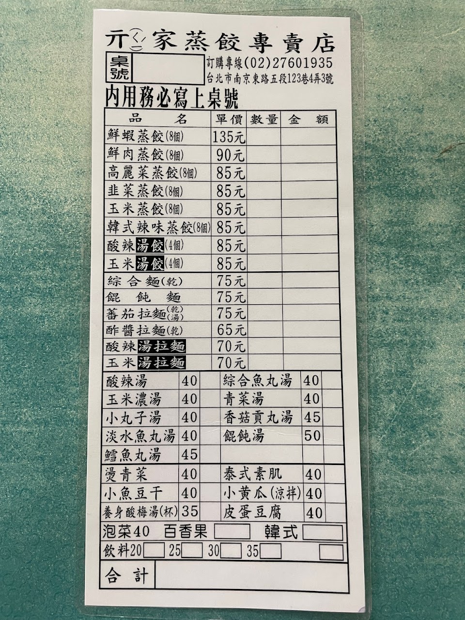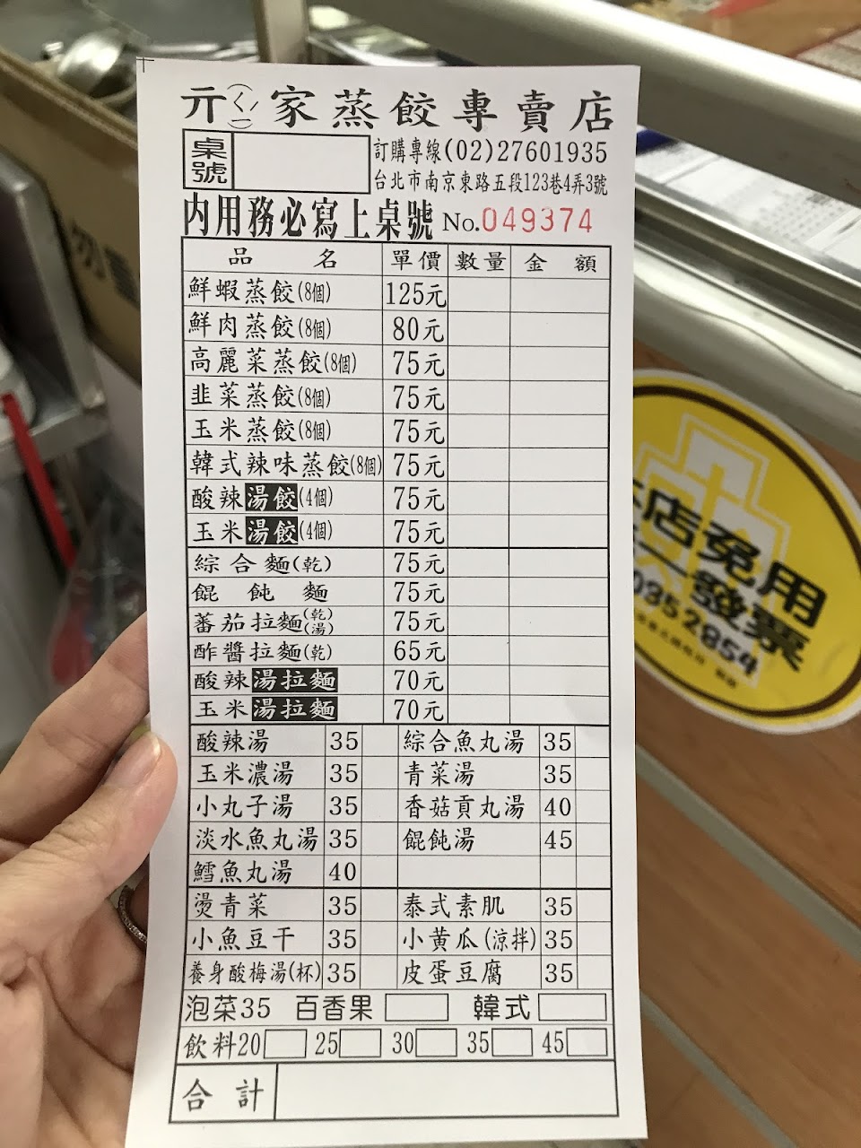 除了蒸餃外,還有湯餃、拉麵、湯品、小菜等,以台北物價來說算是中價位!