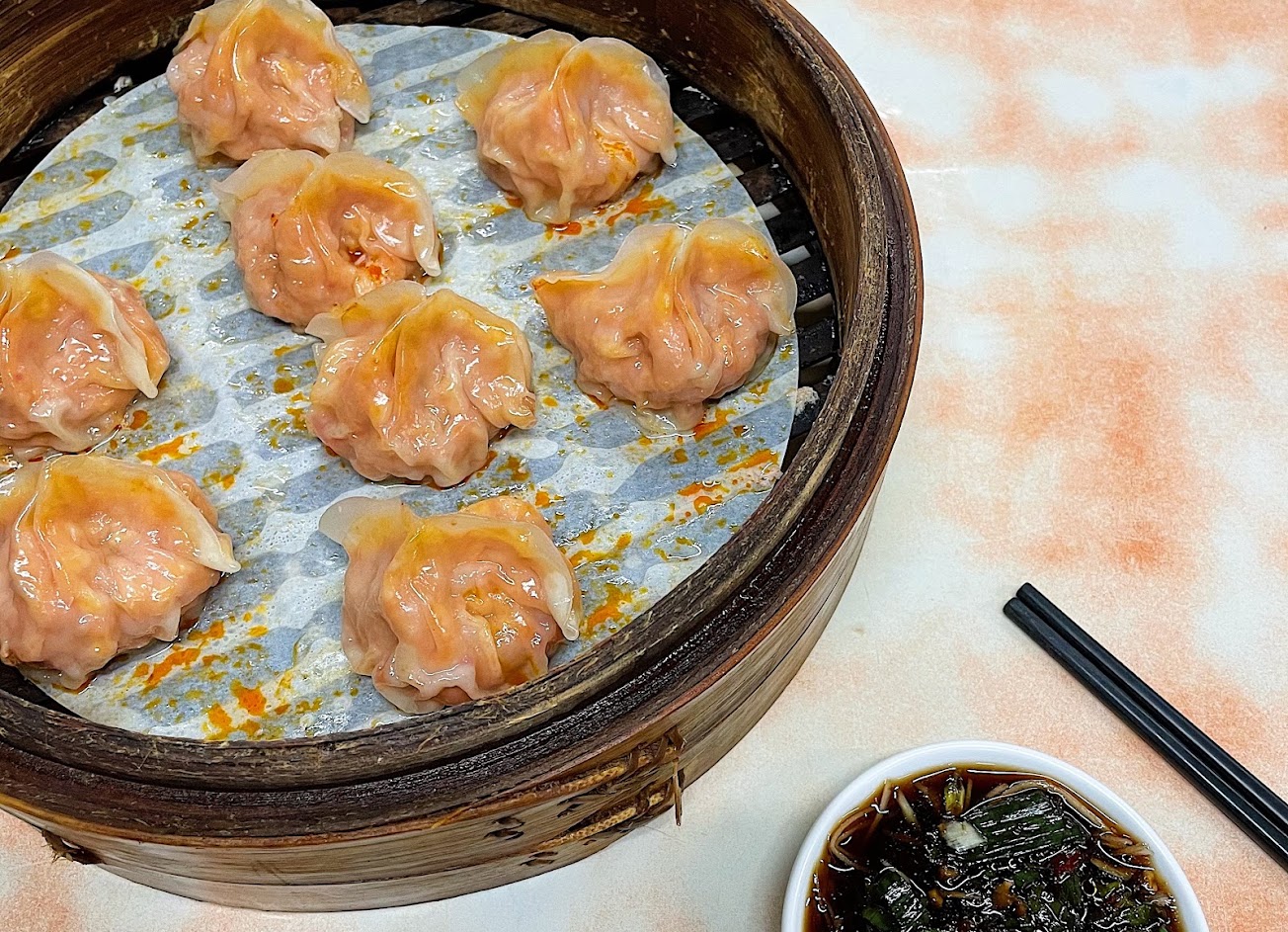 亓(ㄑ一/)家蒸餃:蝦仁蒸餃,皮薄餡多,肉汁鮮甜。