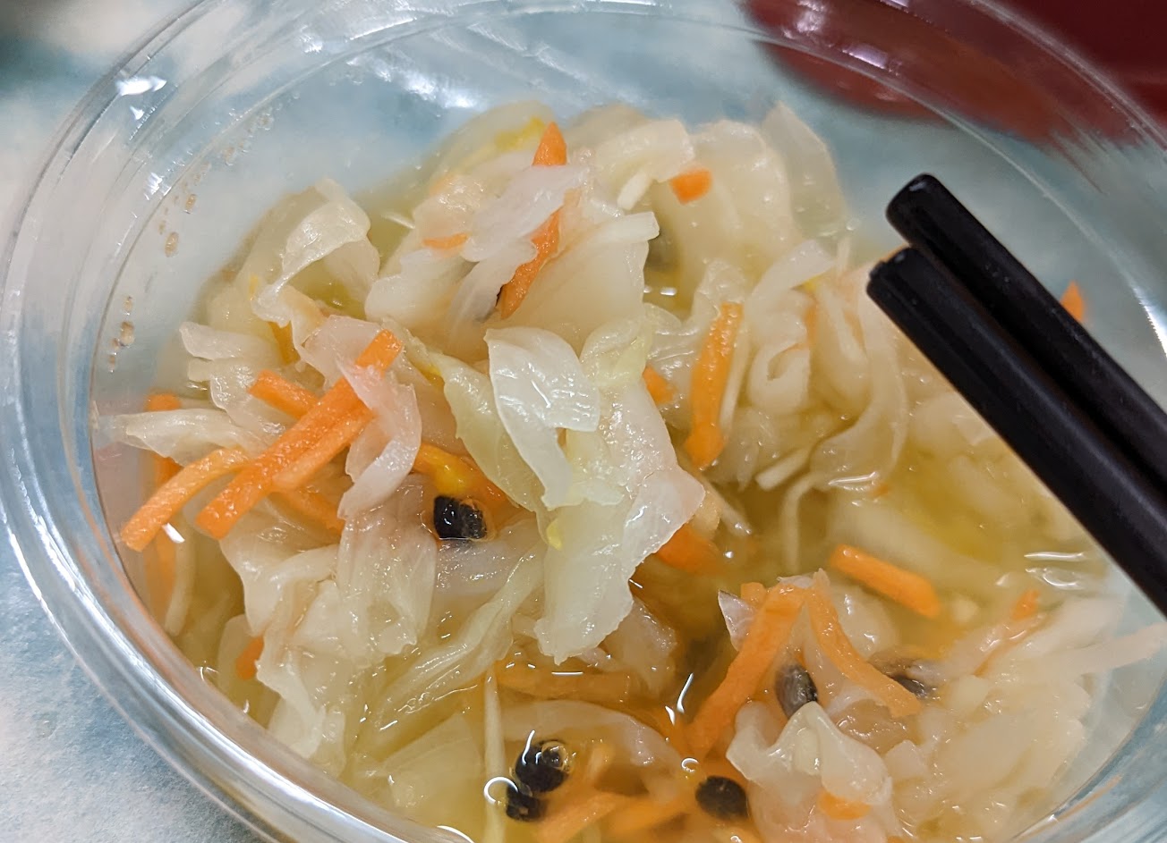 可惜現在沒有鮮蝦絲瓜口味 這次先試鮮蝦蒸餃+百香果泡菜 蒸餃真的要趁熱吃,內餡很香,調味偏淡 不過吃到後面有點膩,因為內餡也偏油 這時候再加醋吃又有另一番風味