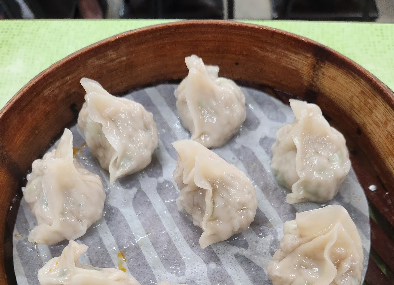 蒸餃名店,皮薄肉餡多汁,不用沾醬就很好吃