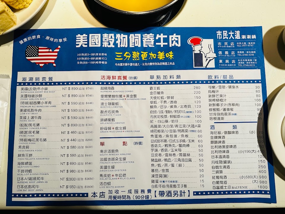 上選牛肉鍋506元(含一成服務費):肉質鮮嫩、值得推薦、比一般涮涮鍋的肉好太多了! 最便宜的牛、羊、豬肉餐皆為460元(不含一成服務費)。 原下午五點才營業,現在中午就有不用等~~