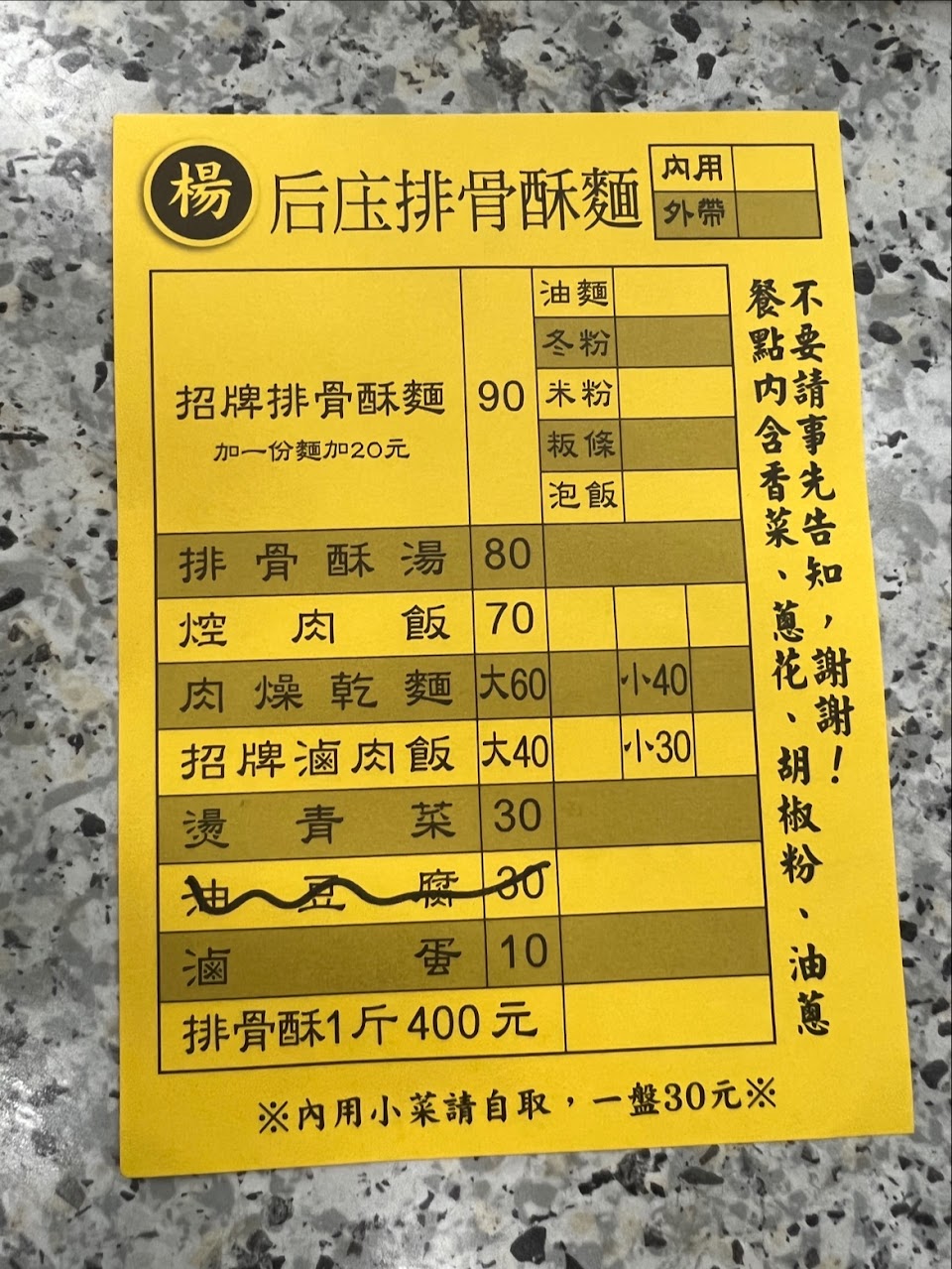 現在外帶排骨酥麵份量少,湯不多,又不夠熱