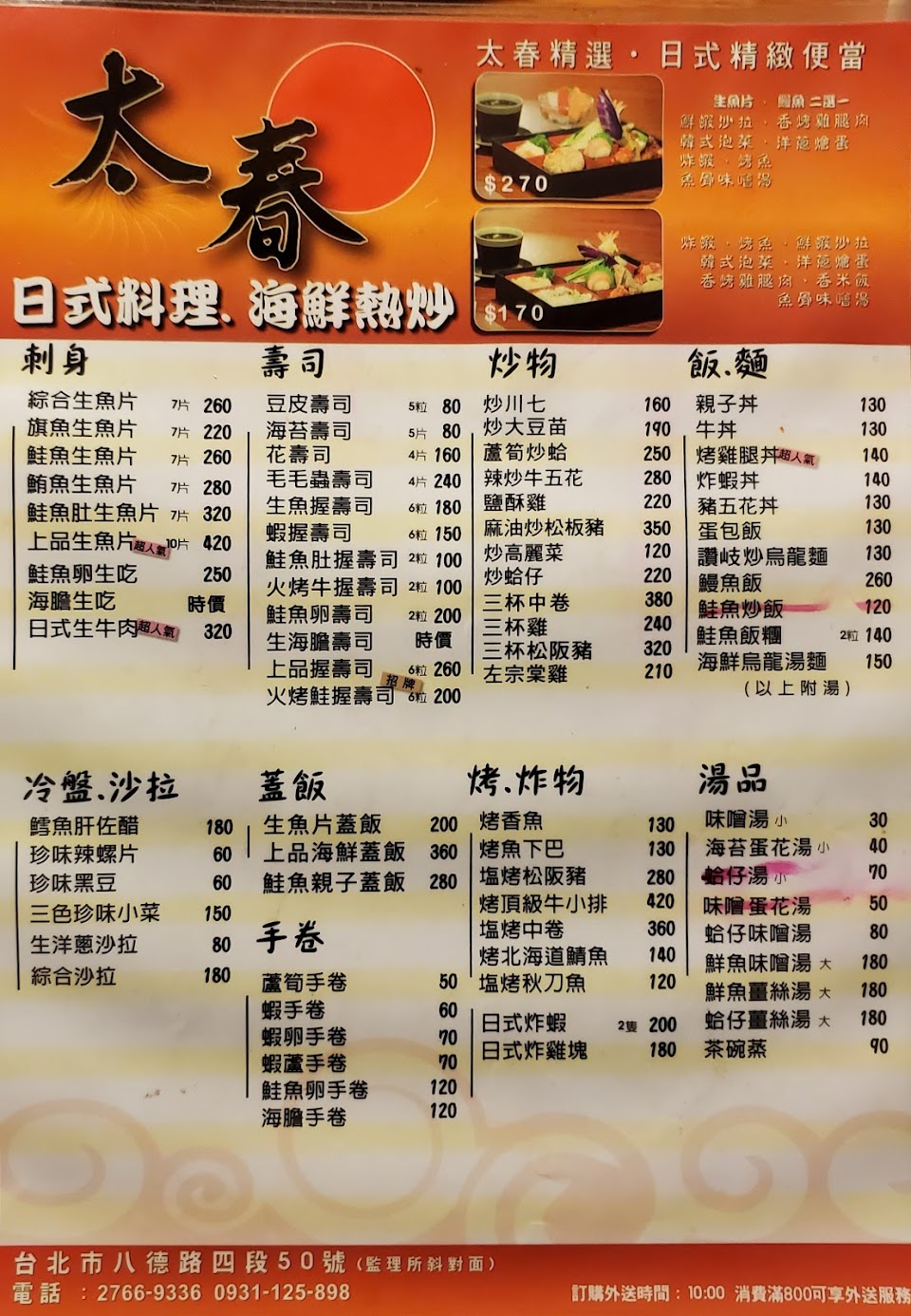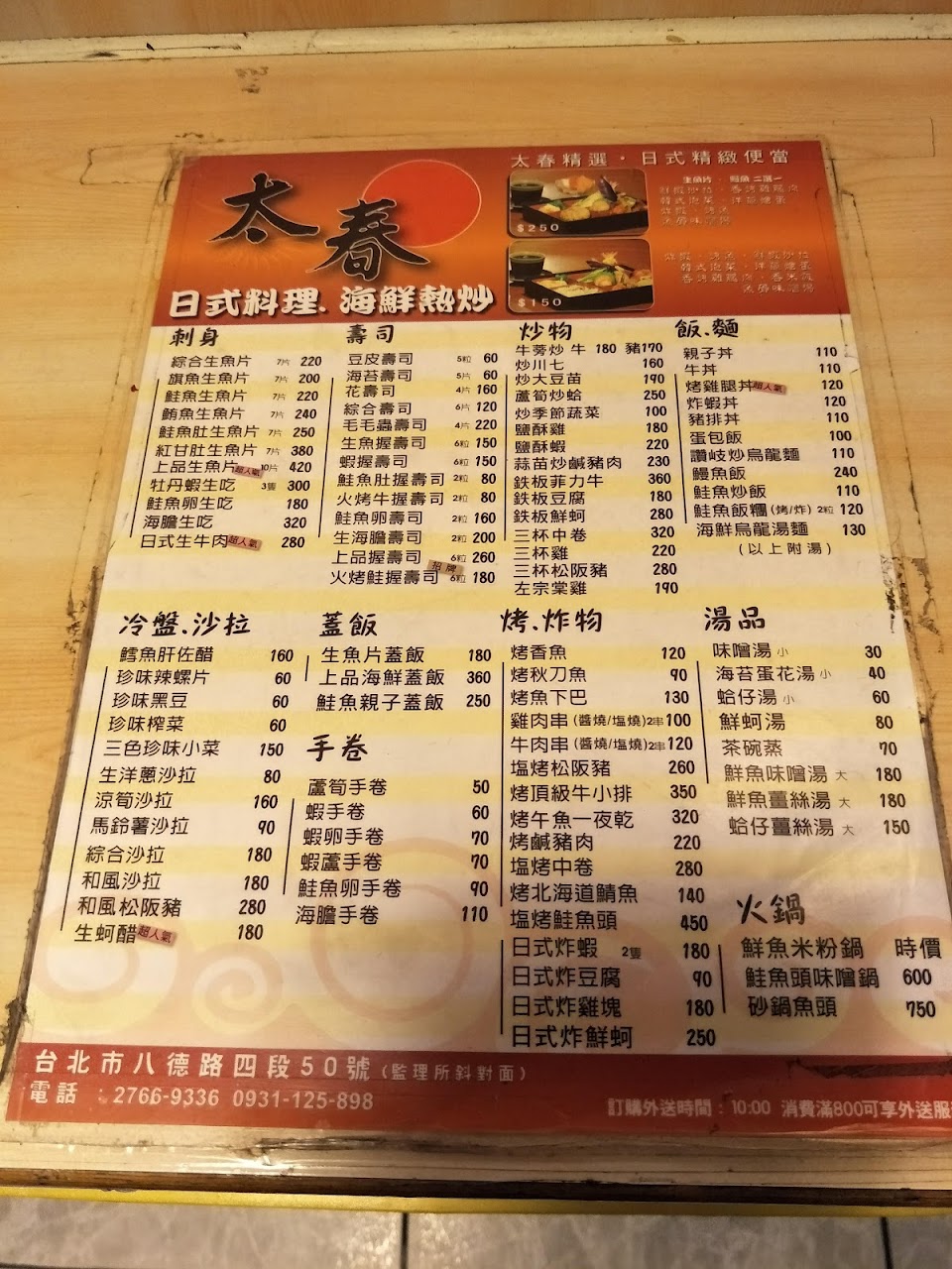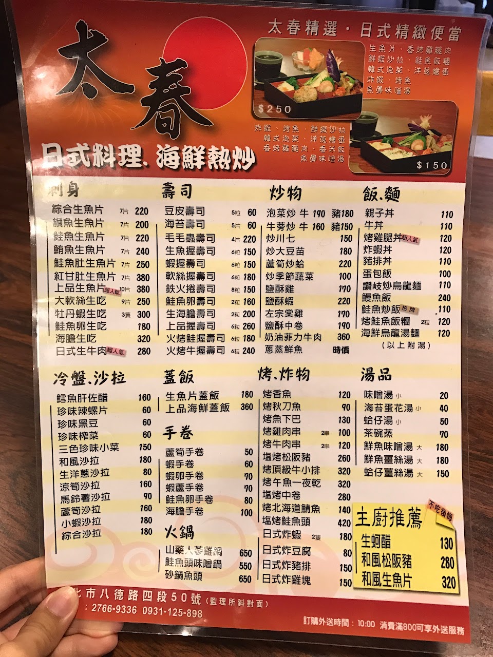 2024最新在地推薦餐廳的菜單_太春日本料理的菜單、圖片