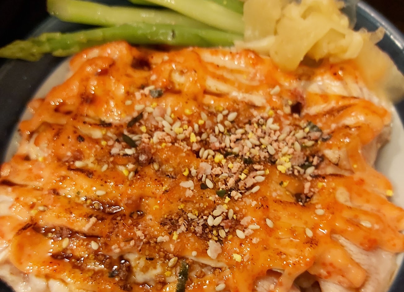 炙燒鮭魚握壽司🍣一份六大顆,入口有鮭魚炙燒過後的香氣跟上面明太子醬的甜,我覺得很好吃!豬排丼跟茶碗蒸吃起來一般般,味增湯夠味不淡,綜合沙拉裡魚卵有點乾,蝦手捲跟一般不太一樣的是有加馬鈴薯沙拉,增加飽足感,生魚片蓋飯160元裡面還有一顆干貝還不錯!三個人吃了770元且很飽,cp值滿高的一家店👍 …