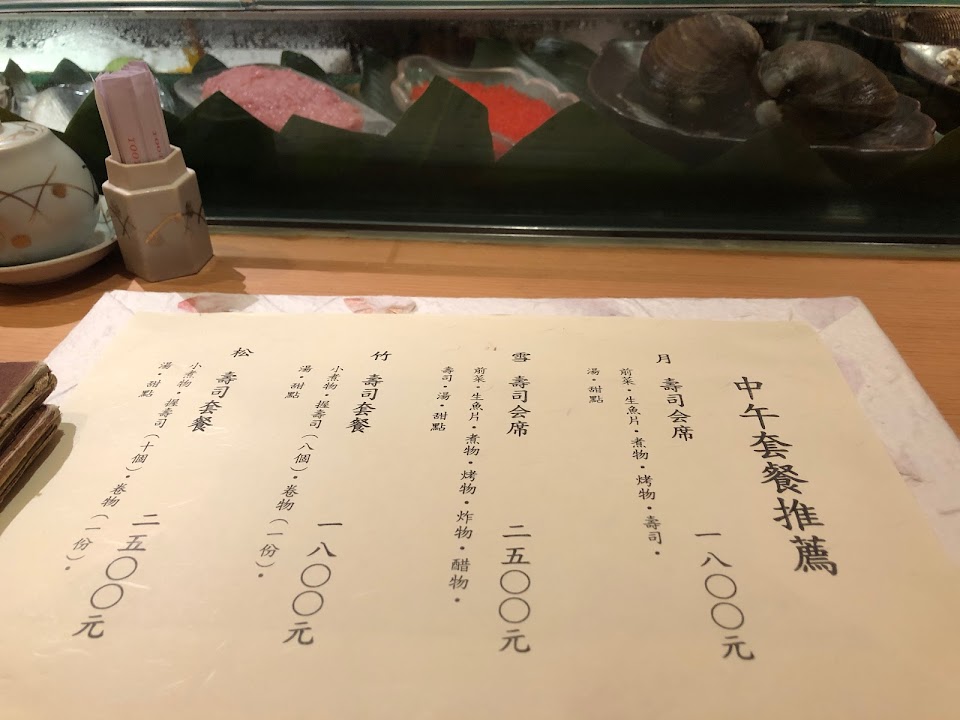 在早年台北的板前壽司沒有如現在雨後春筍般的蓬勃發展時、這家算是相當有名氣的日本料理,特別是因為由某金控少東所投資開設,且當時並沒有那麼多日籍主廚在台灣。 時隔多年,陳舊感處處可見,入用餐區需脫鞋,包廂需要成人彎著腰爬進去(老人家會很辛苦、慎入),菜餚很一般,口味也非常普通,烤魚甚至沒有什麼味道,但店長招待給小朋友的迷你小小握壽司很可愛。