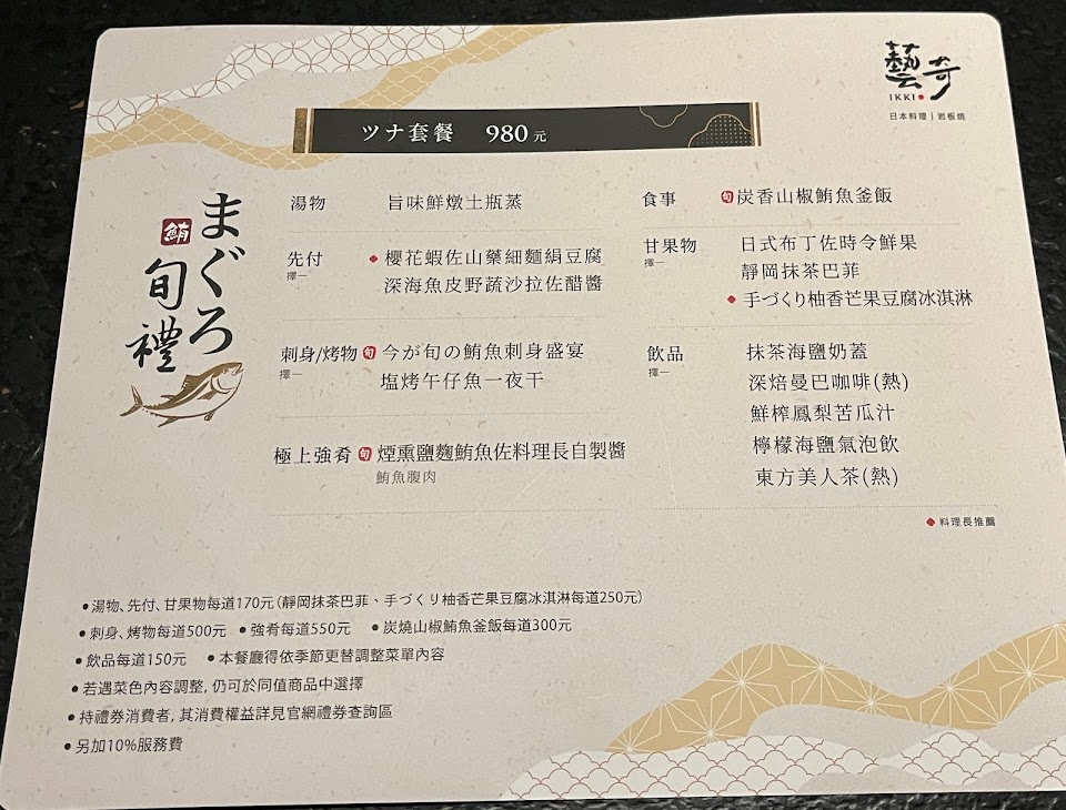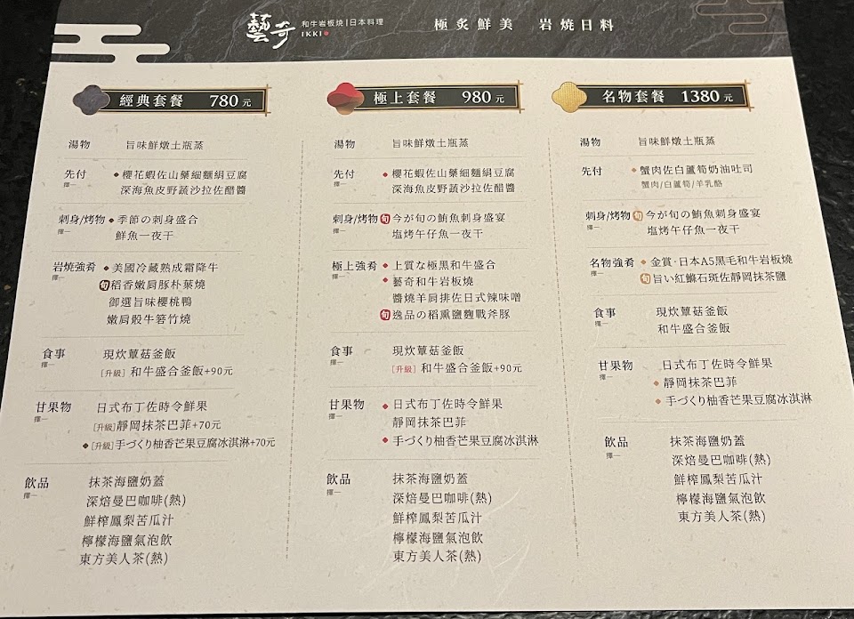 2024最新在地推薦餐廳的菜單_藝奇 日本料理岩板燒 台北敦化北店的菜單、圖片