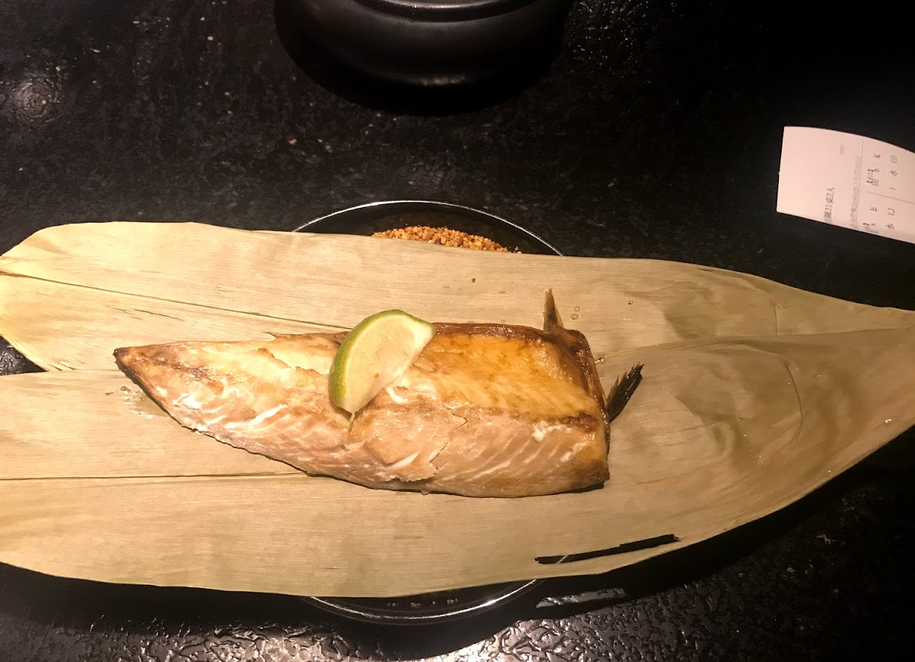 店面在地下室,主餐點了用石頭烤的牛肉,沒想到吃完衣服超級臭!一種腥味+油煙的感覺!前菜感覺都還不錯,生魚片ok烤一夜干好吃,其他普通,環境可能因為燈光及空間材料都暗色系所以感覺黑黑的
