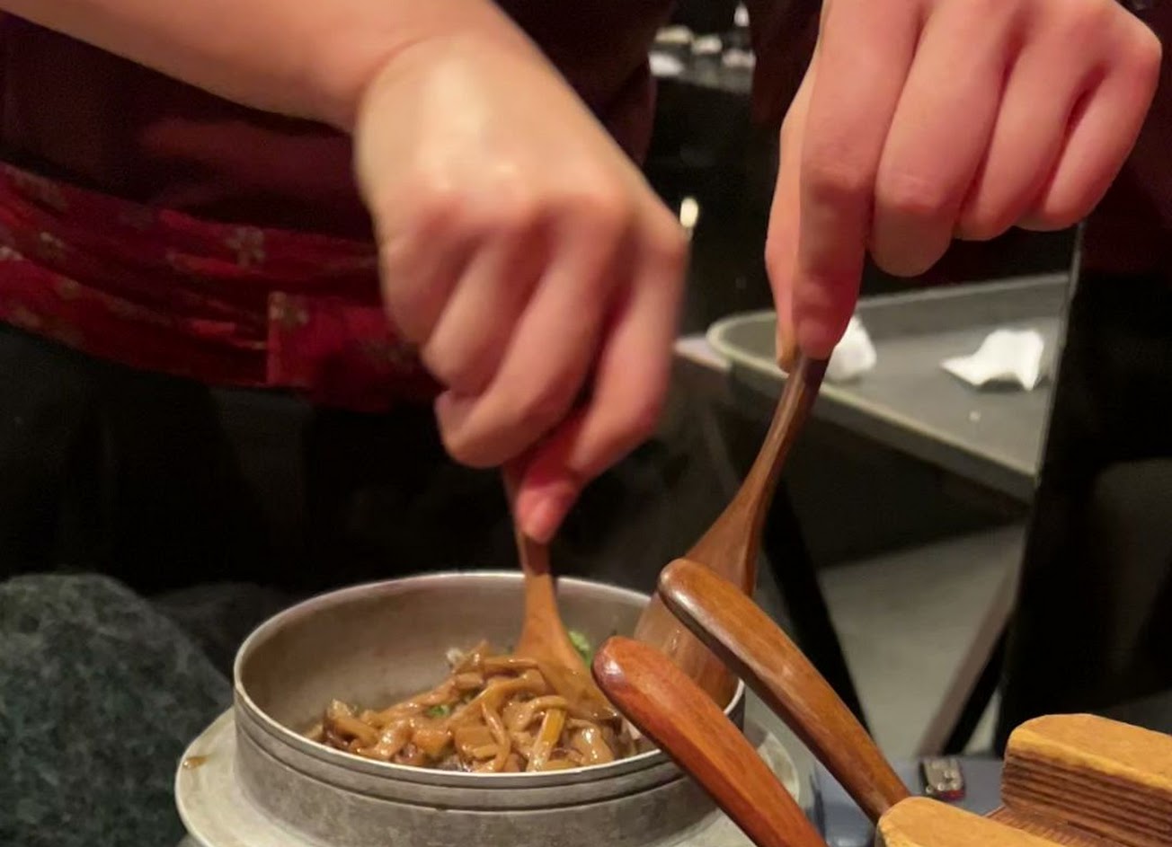 吃晚8服務也沒有受到影響,石板真的很酷,順便烤了洋蔥,很好玩?! 不過!吃品牌的微網美店吧,重視擺盤,也沒有說不好~如果約會或注重儀式感的可以來~但桌子很小,覺得服務員有點辛苦,沒辦法端到我們4個人桌裡面的位置,但因為桌上都有土瓶蒸、熱茶佔據位置,不過希望下次入座可以詢問一下是不是第一次來,入座的時候還是希望有人能介紹一下菜單,然後我們再想~然後我屬於東西吃得慢的,也理解菜要一道一道上,但鮮少吃這種形式的,不過服務員也都很專業,會問你還需要嗎?然後在收盤,吃了一小時,男生說有吃飽,還不錯??本來擔心會不會單純是精緻料理而已! 服務 內用 餐點類型 晚餐 平均每人消費金額 $1,000-1,200