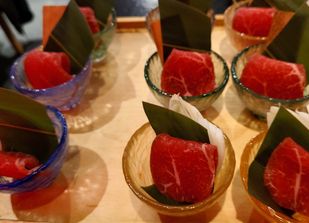 菜單換了、價格也漲了,吃完後有種空虛不解。 1.招待小菜:擺盤美觀,但總感覺在吃韓式小菜。 2.刺身:點了不同價位的,但吃起來重在擺盤儀式感。 3.加價換了和牛壽司,肉過乾柴、墊底海苔濕軟。 4.主餐也是擺盤吸睛度大於肉質口感。
