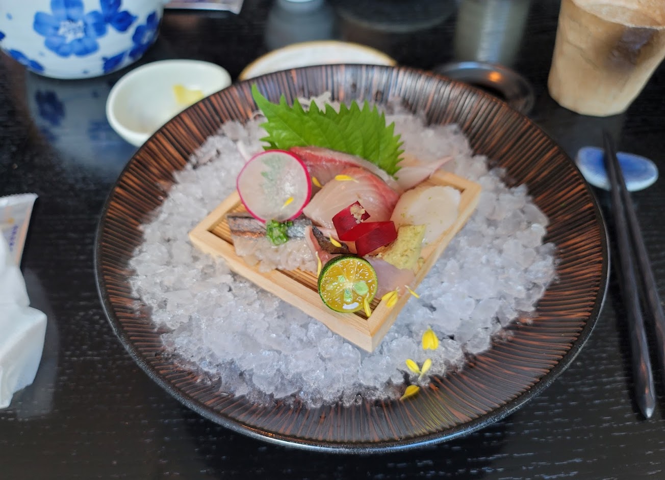 整個食材新鮮、可口。但似乎就缺少一些驚艷(尤其考慮到價錢)。以標榜割烹料理,熟食比例算少。正式商業晚餐宴請客戶可以考慮,但若是要家庭聚餐享受,有其它選擇可以考慮