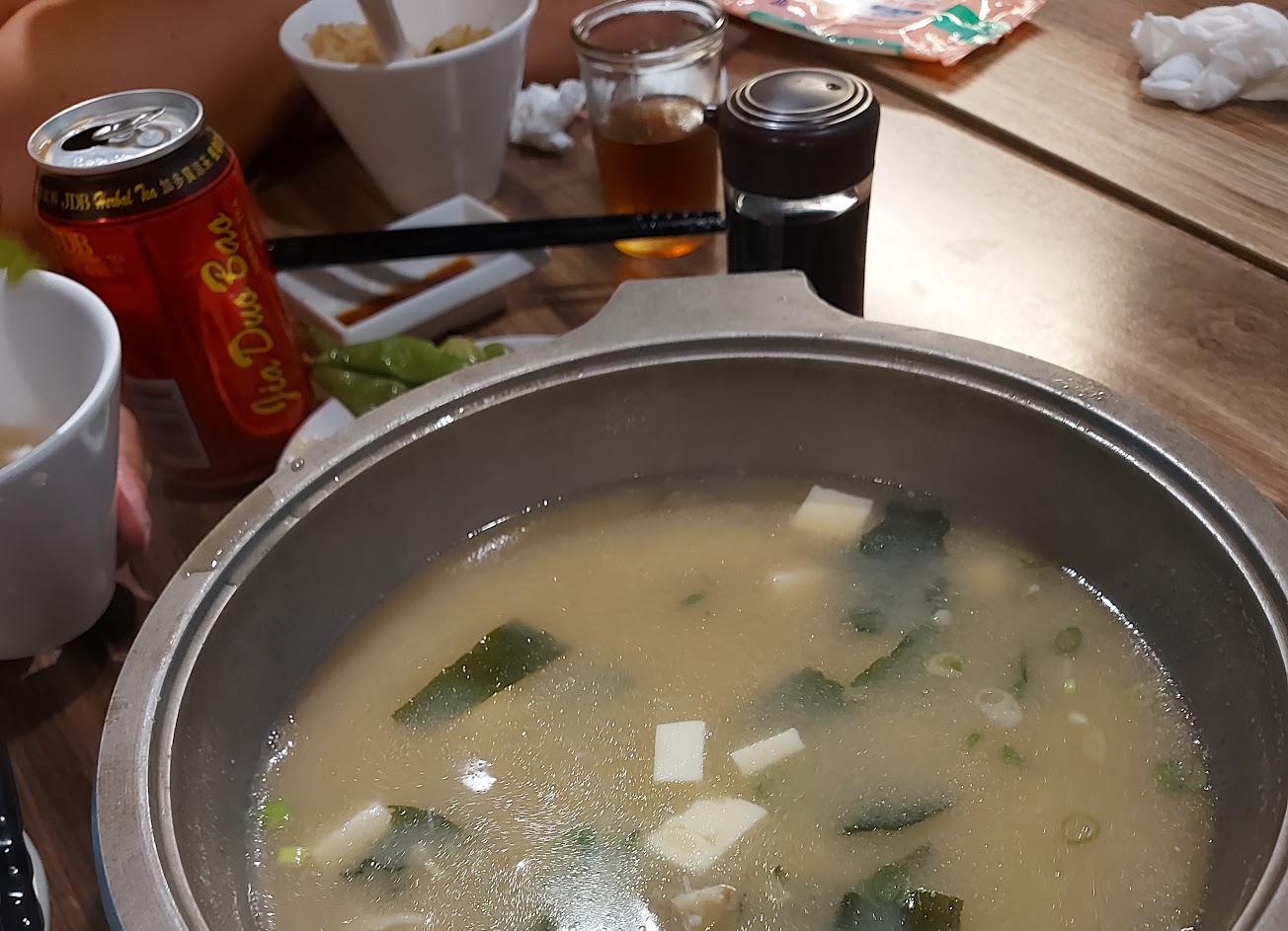 鮮魚味噌湯 用料滿滿的湯,有好幾種魚肉在裡面,鮭魚旗魚等,而且不只是魚骨頭,是有整塊魚肉的,不過有幾種魚的魚肉有點柴。湯頭的部分也很剛好,不會太鹹很好喝。點菜時店員說這一份沒有很多我們四個人可能會不夠,但上來後每個人都分到1.5碗,而且料還吃不太完,CP值高