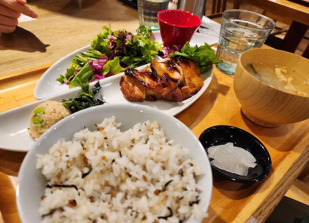 五穀飯 味噌 湯 雞肉柚子果醬照燒