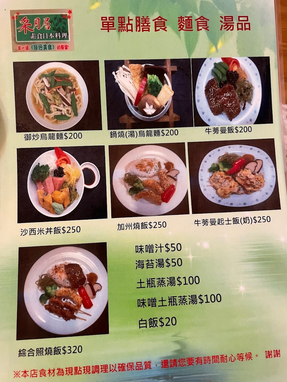 雖是巷弄裡的素食日式料理但食材新鮮,味道很實在,值得推薦的店家