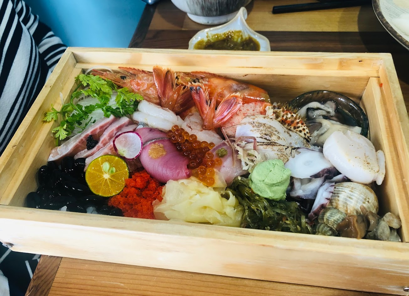 生魚片的搭配充滿巧思,柚子胡椒的搭配特別喜歡。甜蝦超鮮甜,每樣都新鮮美味。