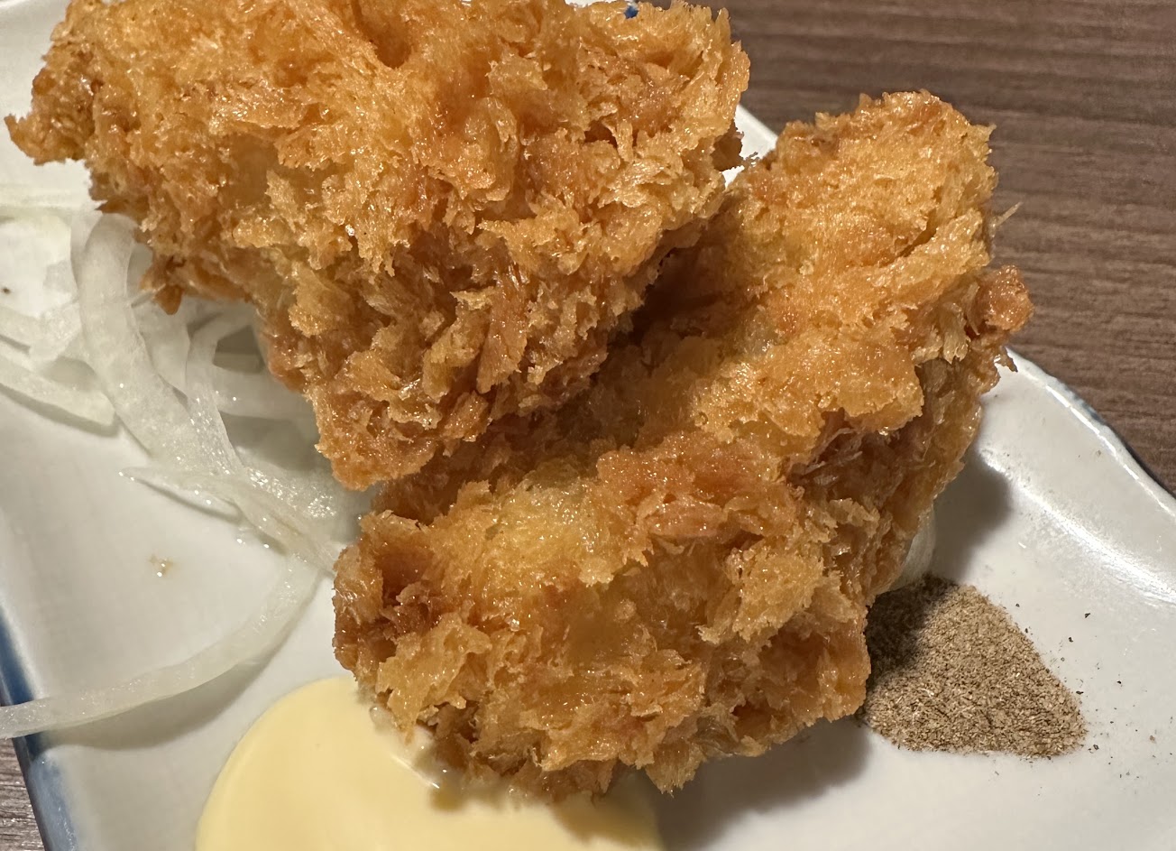 這一天我們點了白帶魚卷定食和比目鮭魚丼,兩個餐點都非常的好吃,不過下次要點的時候會記得比目魚不要炙燒,因為炙燒之後比目魚鰭邊肉的脆度及他香濃的牛奶味就不見了,不過至少的鮭魚倒是在水準之上,非常推薦。白帶魚卷本身鹹度並不高,靠的是炒椒鹽蔥蒜來調味,魚肉本身是裏薄粉下去炸,所以外頭搖起來酥酥的,裡面是軟軟的,兩份餐點都非常好吃。其他的配菜尤其是蒸蛋和味噌湯都蠻順口的。下次還會再來。