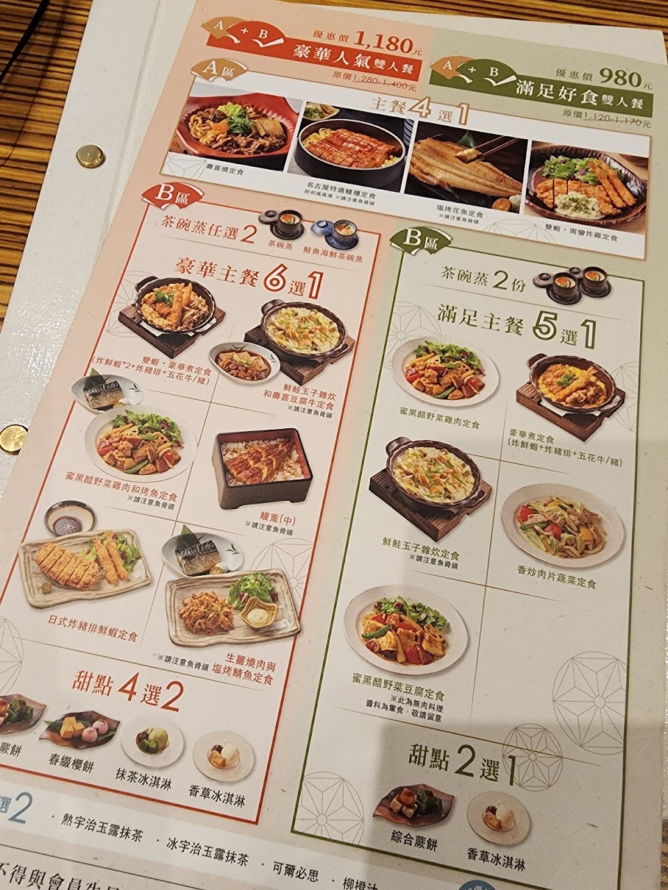 雙人套餐是不錯的選擇,還有茶碗蒸,飲料和甜品!