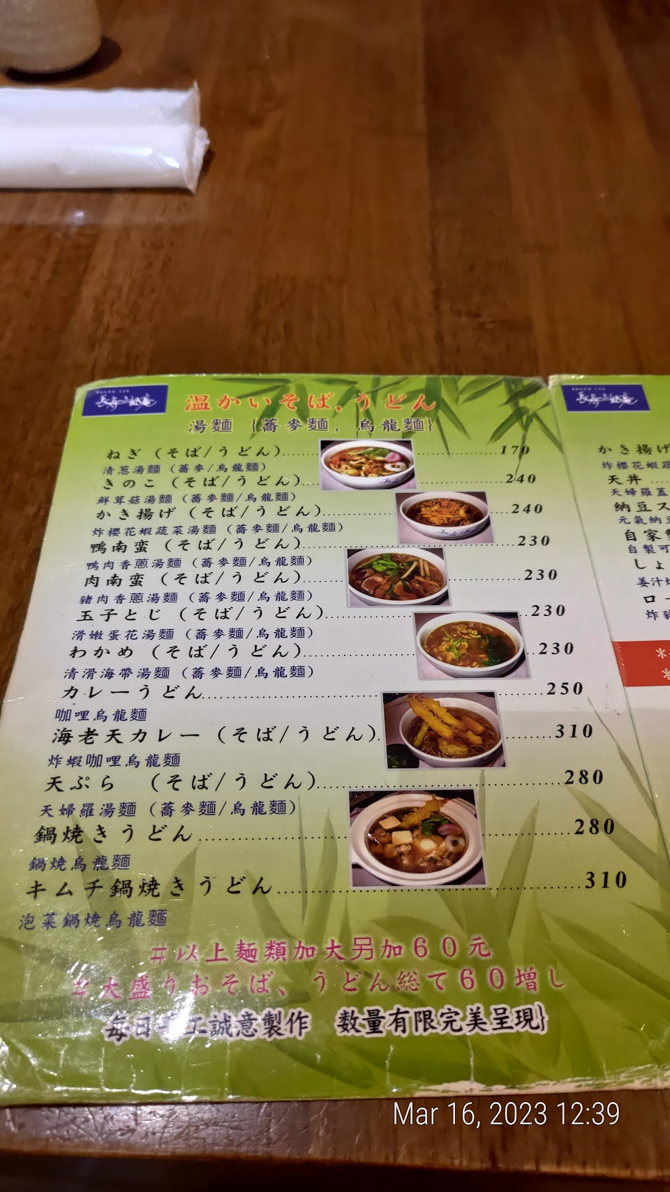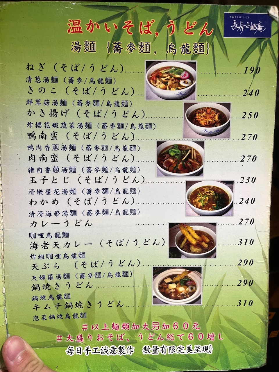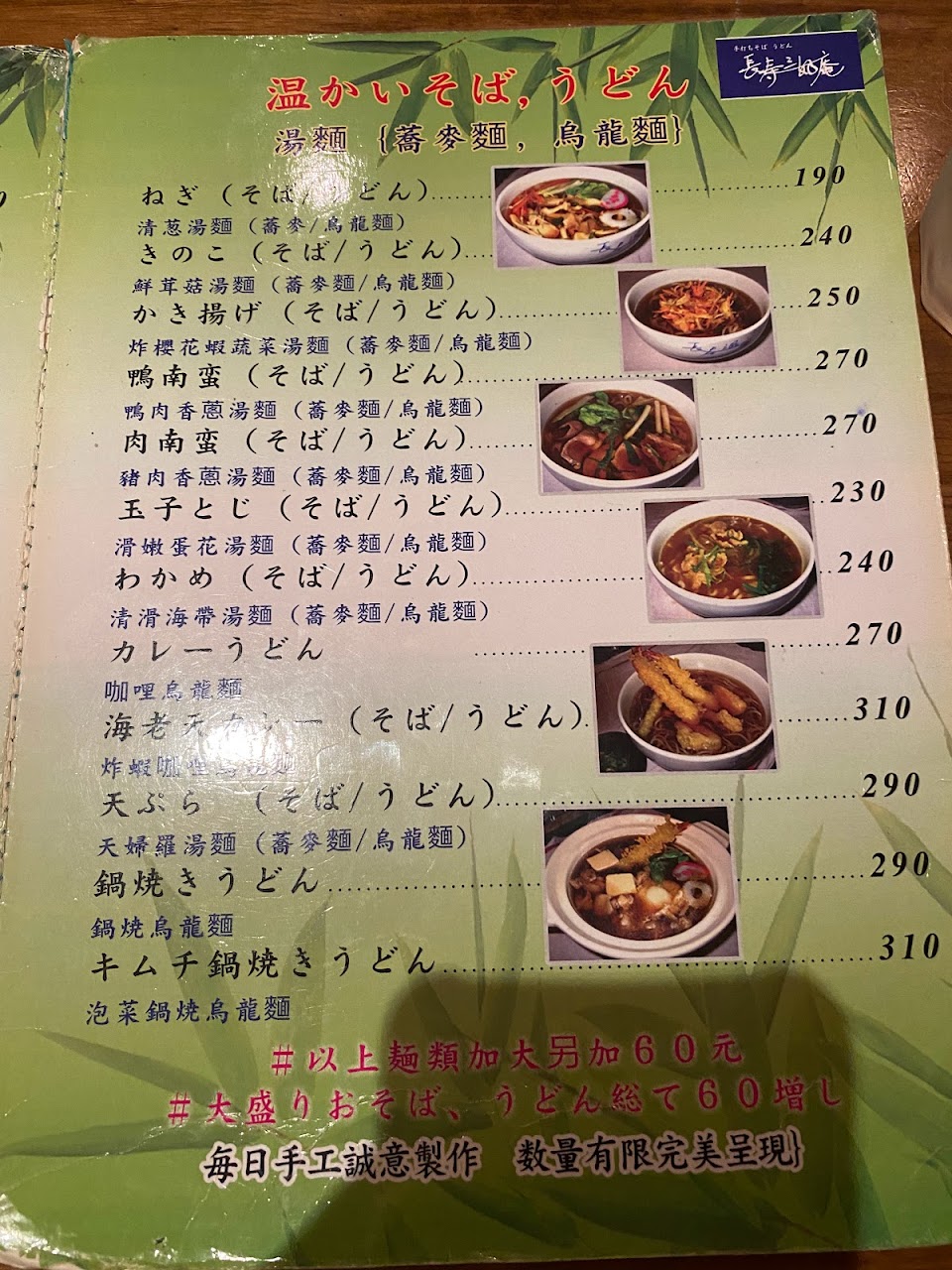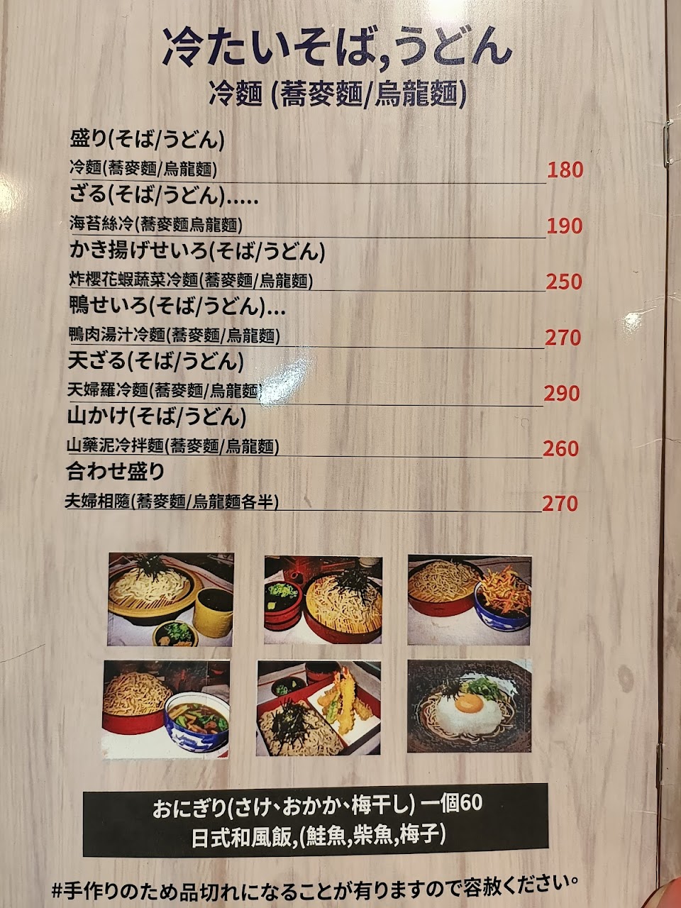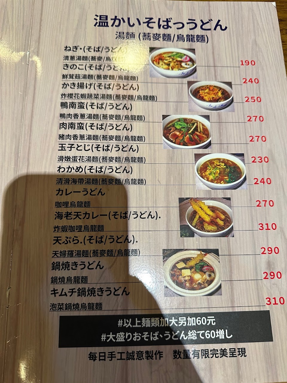 除了拉麵外還有賣蕎麥麵、烏龍麵