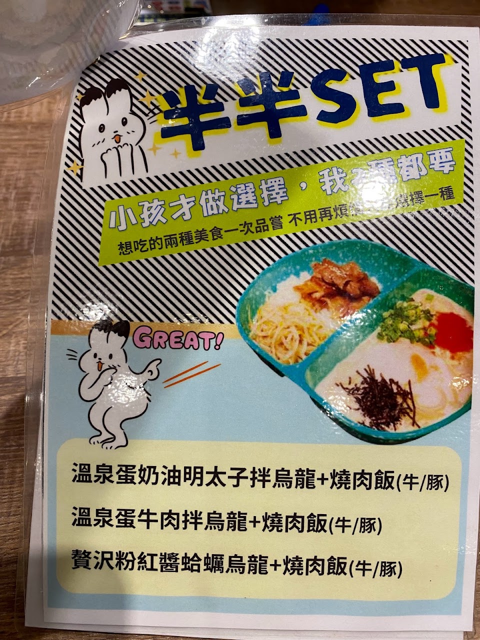 ?半半餐 溫泉蛋奶油明太子拌烏龍+燒肉飯(豚) $???