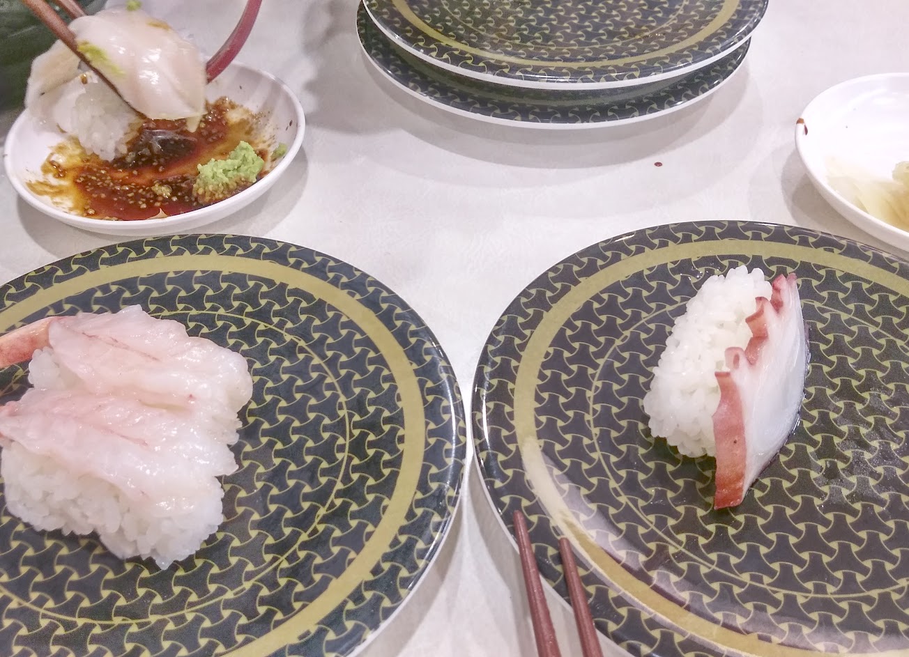 平日不用排隊,是臨時想吃壽司又不想花時間的好選擇。跟藏壽司不同的是沾醬有三種能依自己喜好挑選,但壽司品質個人覺得藏壽司好上一點。