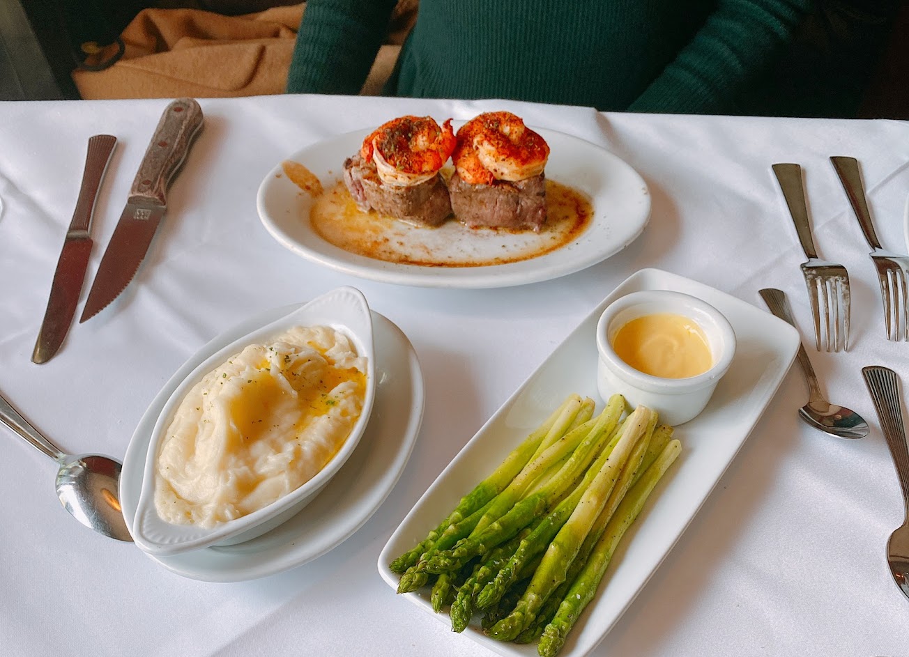 服務人員態度超好,很貼心服務,很適合約會,可能是美式餐廳,網路推薦菠菜對我來說太油,牛排也很油,但肉質還ok,蟹肉糕很可以,香蕉奶油派很香蕉餅皮很美式