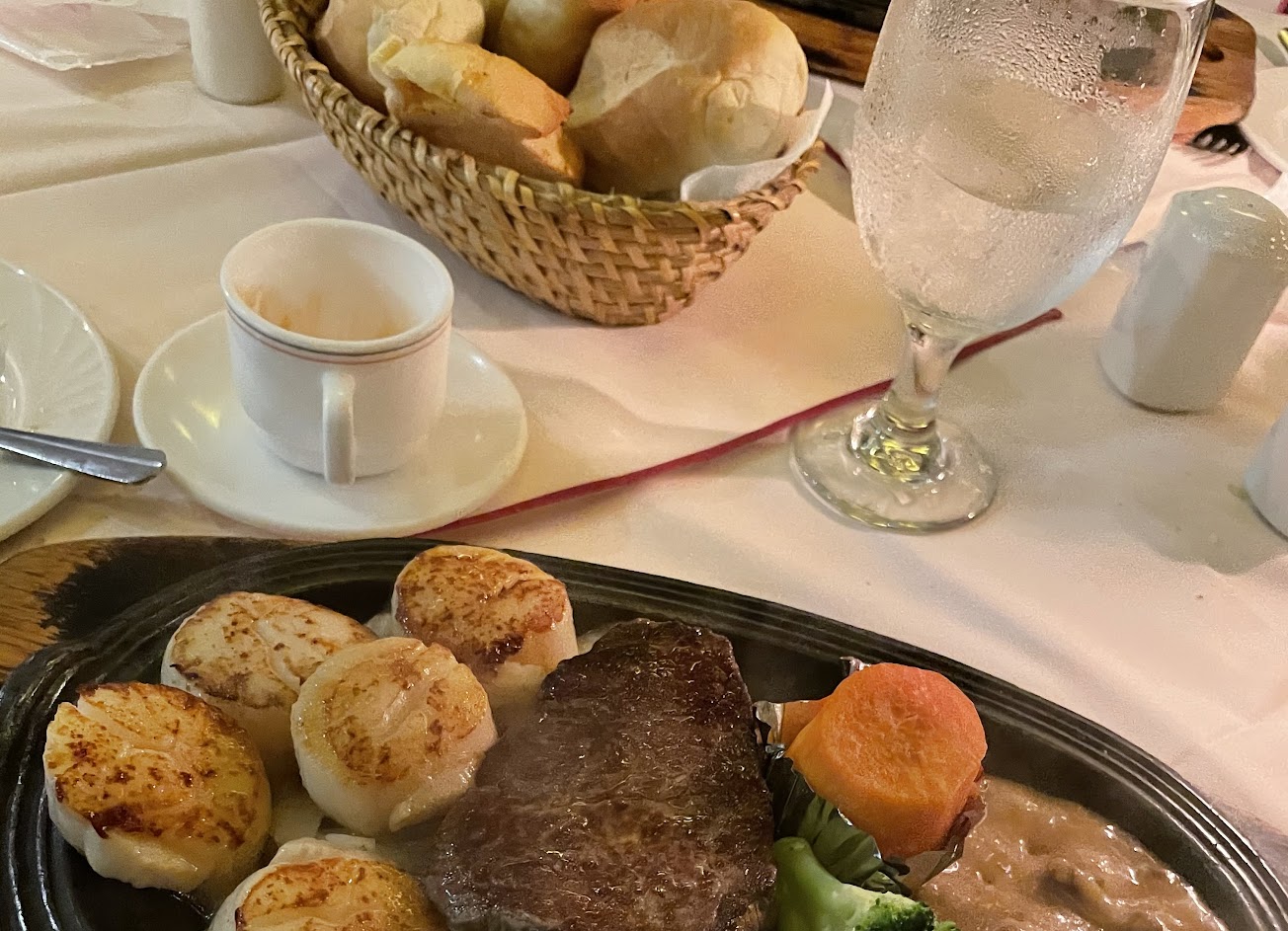 服務人員親切笑容滿面,用餐氣氛佳,餐點品質穩定,幾十年口味一致,美國菲力牛排軟嫩多汁,海鮮濃湯料多味美,麵包可以無限續點,除了甜點還招待手工布丁,讓人賓至如歸?
