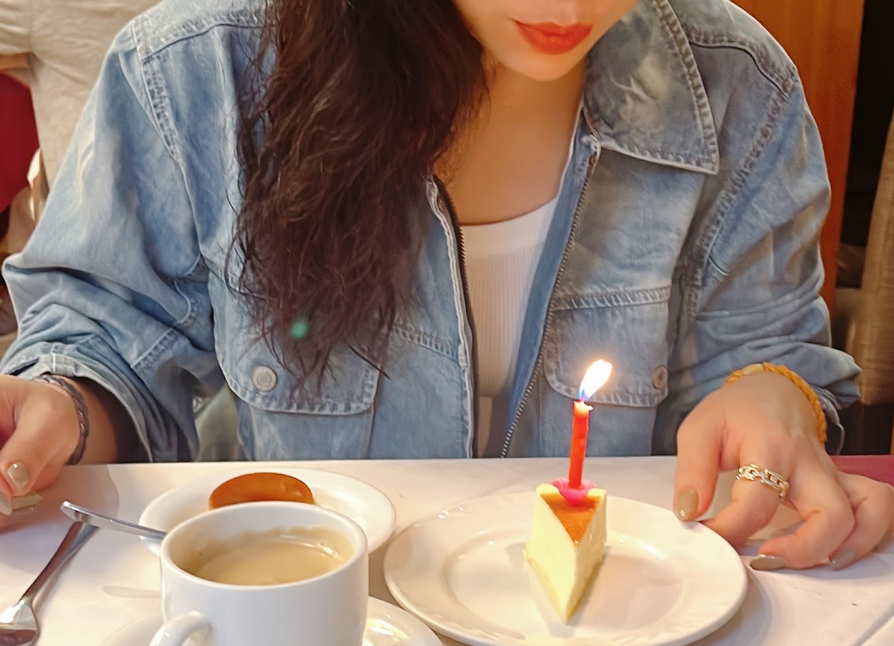 上生日蛋糕時全店放生日快樂歌,我看到媽媽眼睛泛淚了?。雖然是我生日,但我請店員放在媽媽面前,生日呀,媽媽最辛苦。結帳時店員小姐特別跟我說生日快樂,她注意到其實是我生日,我好感動。